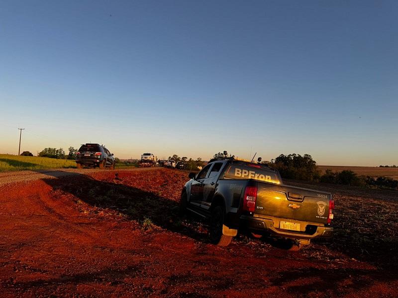 Durante o trabalho de monitoramento, as equipes do NEPOM da Polícia Federal de Guaíra, do BPFron e da Patrulha Rural do 19º BPM da Polícia Militar flagraram o momento em que veículos eram carregados com fardos de entorpecentes. A movimentação chamou a atenção das equipes, que intervieram rapidamente e conseguiram interromper o transporte ilícito.