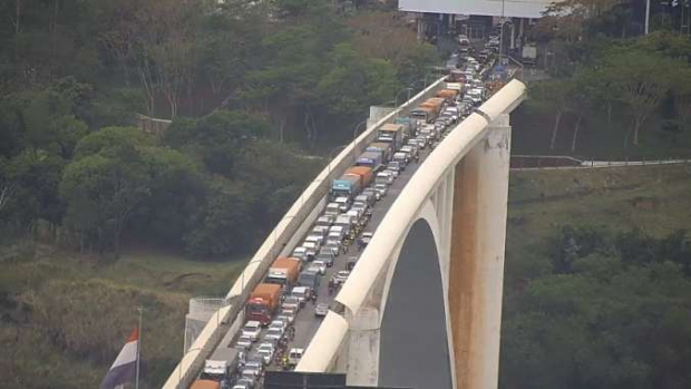 A PRF (Polícia Rodoviária Federal) revela que há uma fila extensa de carros e caminhões do lado brasileiro tentando acesso ao Paraguai, mas apenas motocicletas são permitidas neste momento.