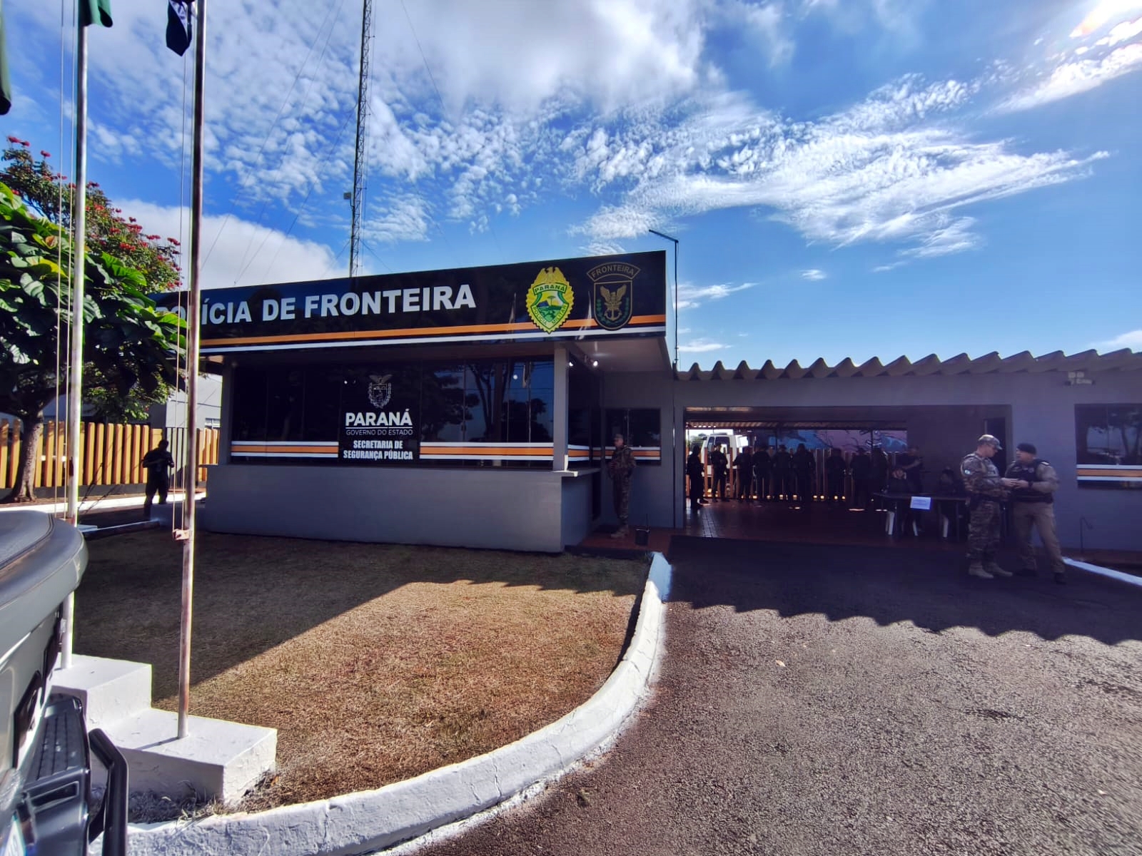 A comitiva, que seguiu por terra até a cidade de Santa Helena para a inauguração do novo posto integrado de policiamento de fronteira, foi chefiada pelo secretário estadual de Segurança Pública do Paraná, coronel Hudson Leôncio Teixeira, na companhia do comandante geral da Polícia Militar, coronel Jefferson Silva, do sub comandante geral da PM, coronel Paulo Renato Siloto, do comandante do 5º Comando Regional de Polícia Militar, com sede em Cascavel, coronel Valmir de Souza, e do comandante do BPFron, tenente-coronel Eldison Martins do Prado.