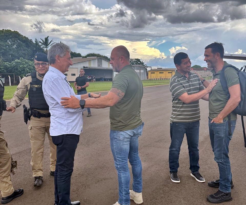 Uma comitiva de autoridades policiais do Paraná foi recepcionada no aeroporto de Marechal Rondon na manhã de quarta-feira (28), pelos vereadores Valdir Sachser (Valdirzinho) e Coronel Welyngton, presidente e primeiro-secretário da Câmara Municipal, respectivamente.