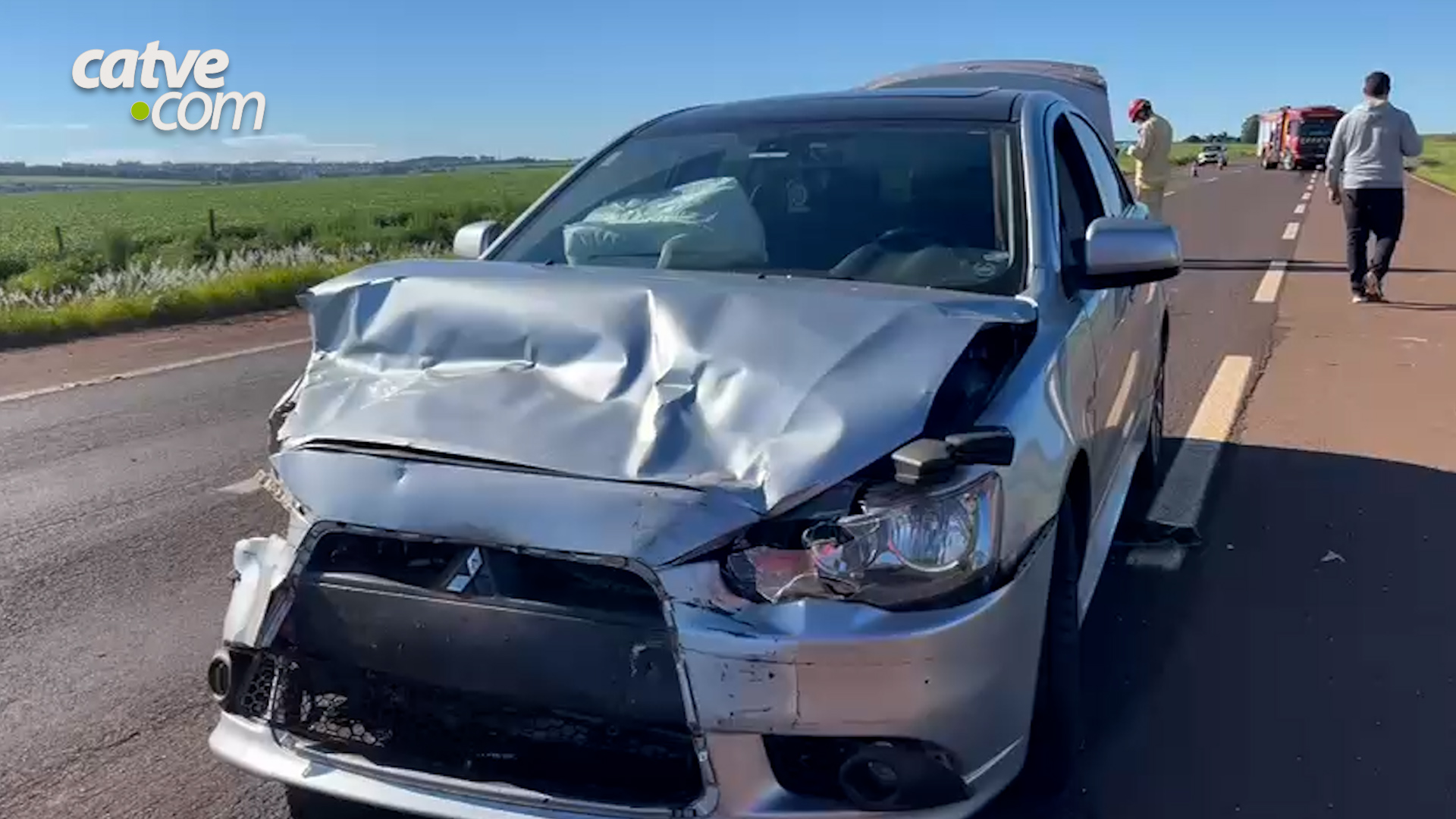 O Uno seguia pela rodovia quando o motorista tentou realizar um retorno para seguir em direção a Toledo. Durante a manobra, o veículo acabou se envolvendo em uma batida com um Mitsubishi Lancer, que trafegava no sentido oposto.