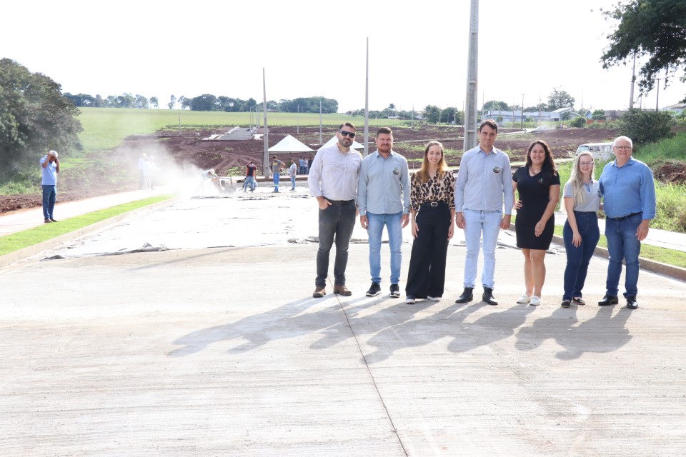 Autoridades municipais e da região, empresários, engenheiros e arquitetos, acompanharam na sexta-feira em Pato Bragado o lançamento da tecnologia de pavimentação em concreto, no Loteamento Poente.