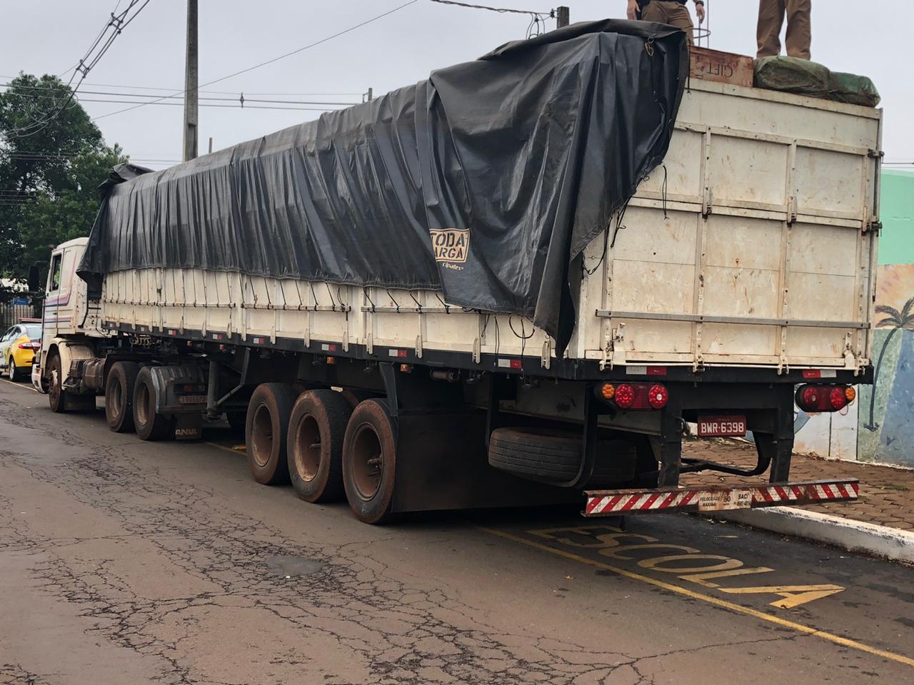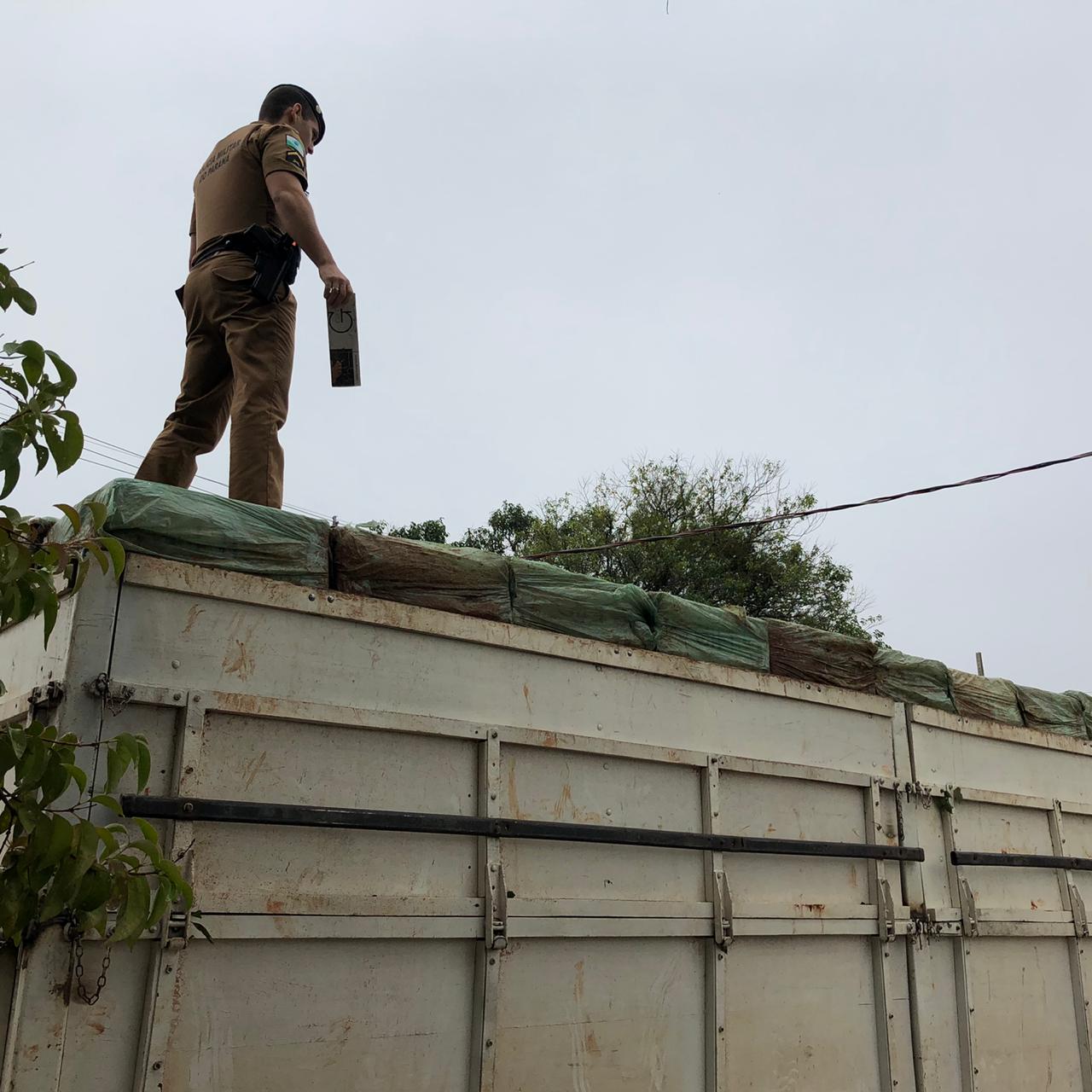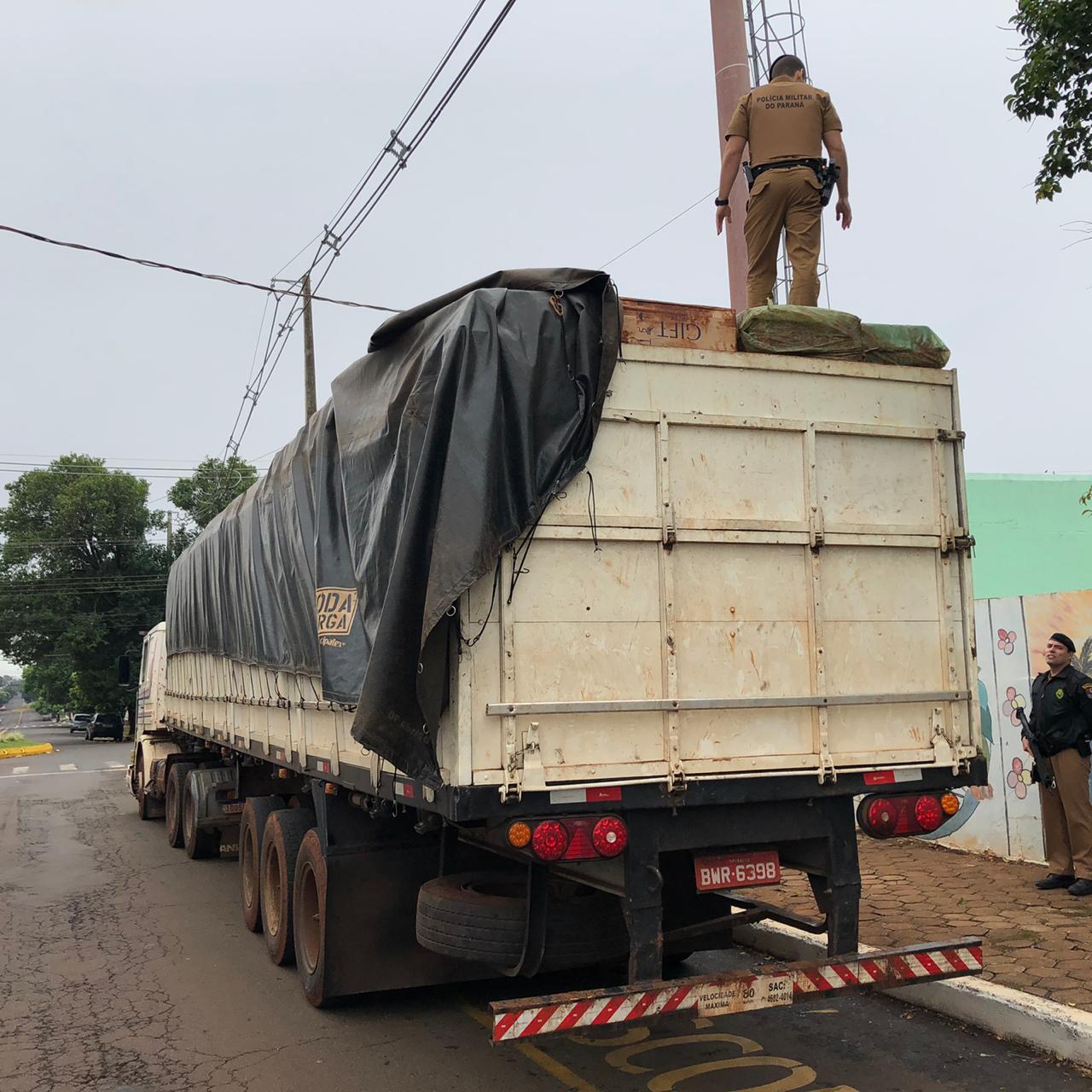 PM apreende Carreta carregada com cigarros contrabandeados em Entre Rios do Oeste