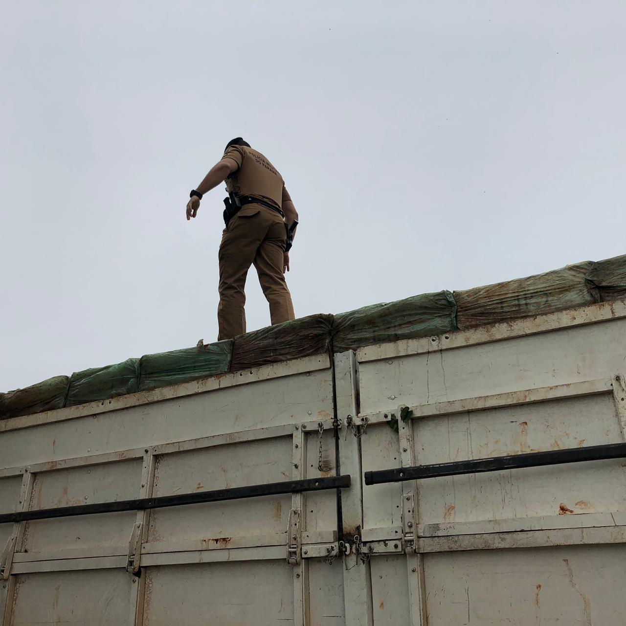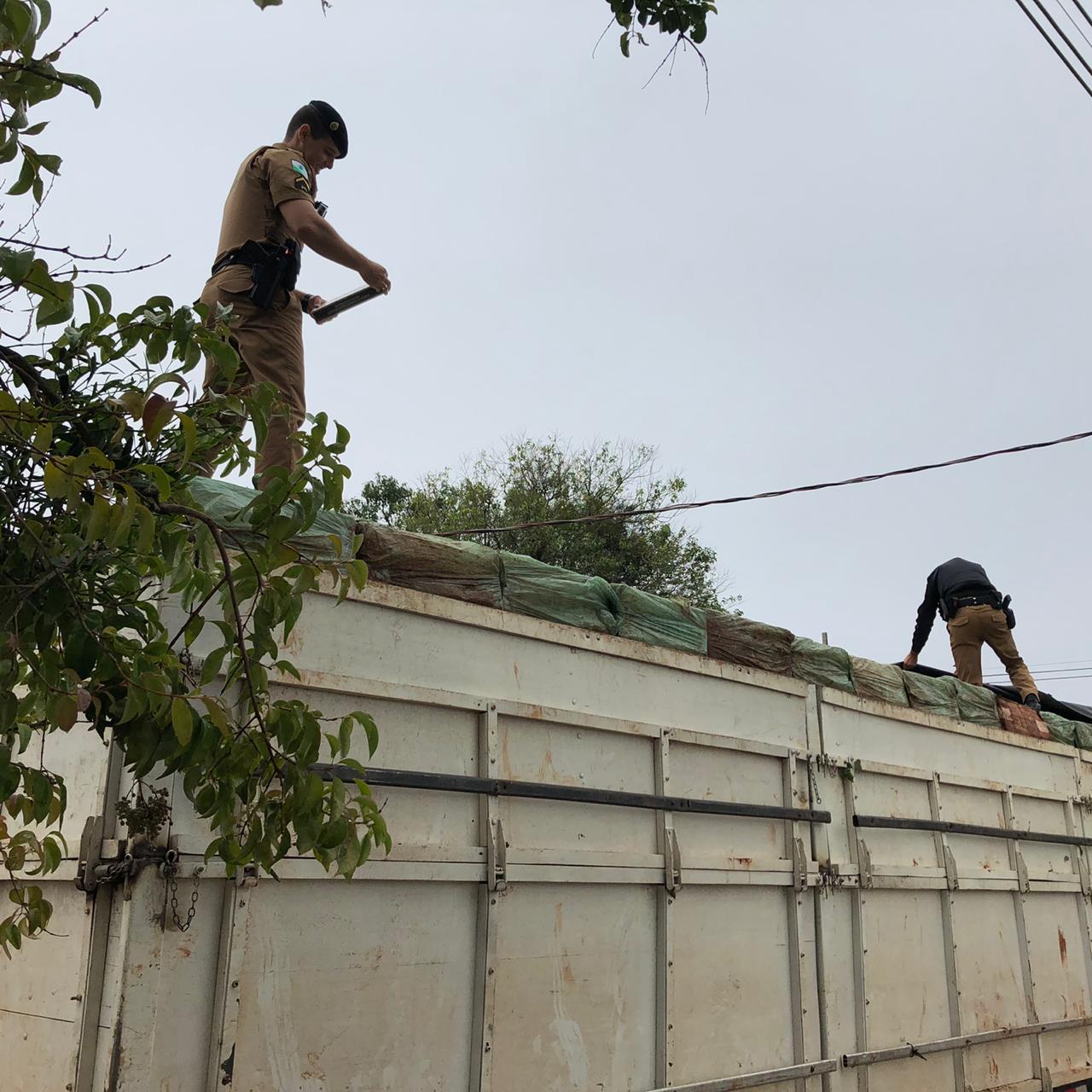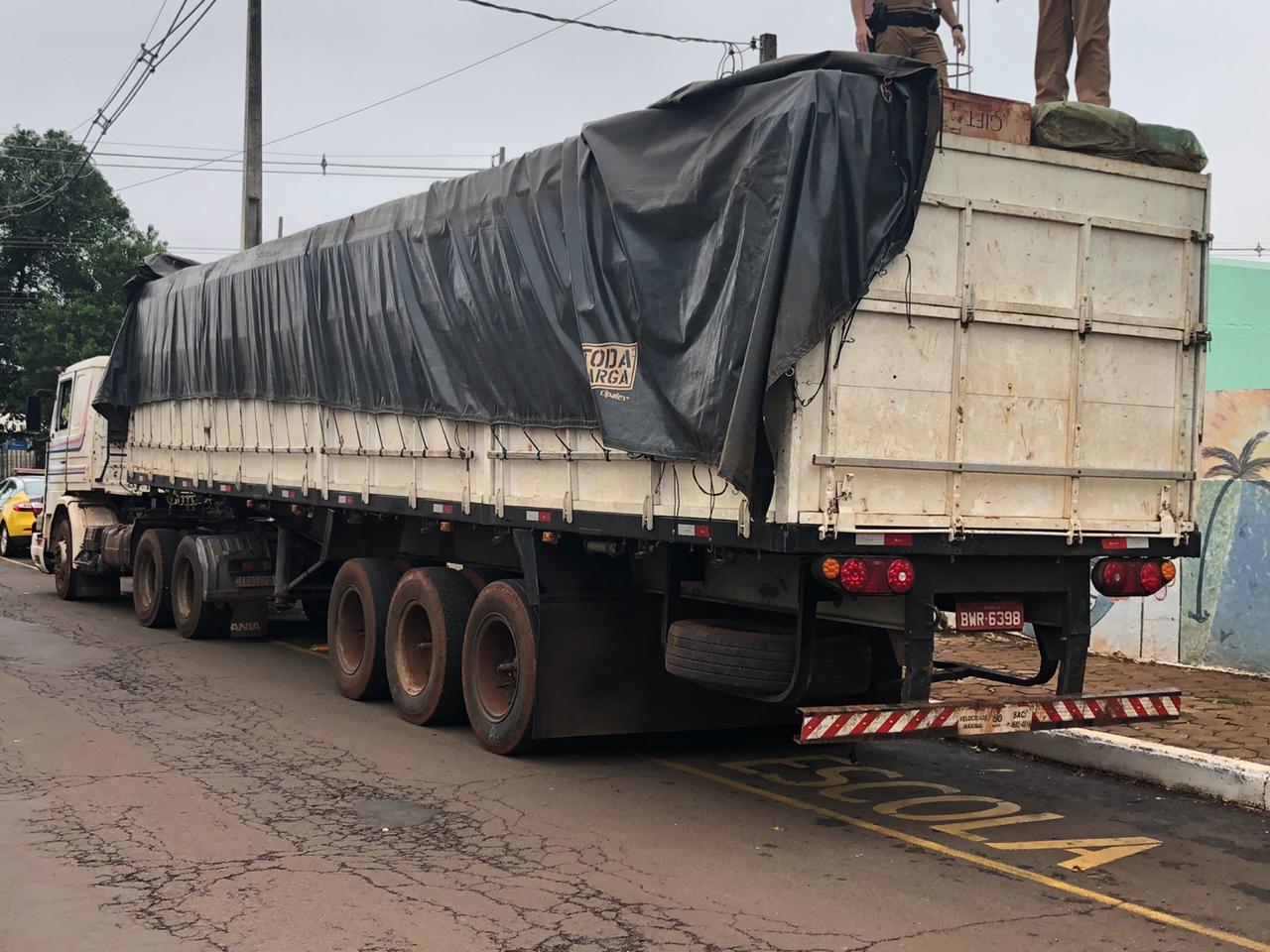 PM apreende Carreta carregada com cigarros contrabandeados em Entre Rios do Oeste