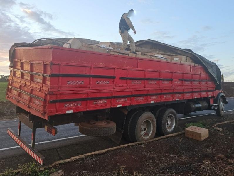 Conforme a Polícia Militar, por volta das 5h00 da manhã, a equipe foi informada sobre um caminhão parado na BR-163, saída para Guaíra, com movimentação de pessoas.