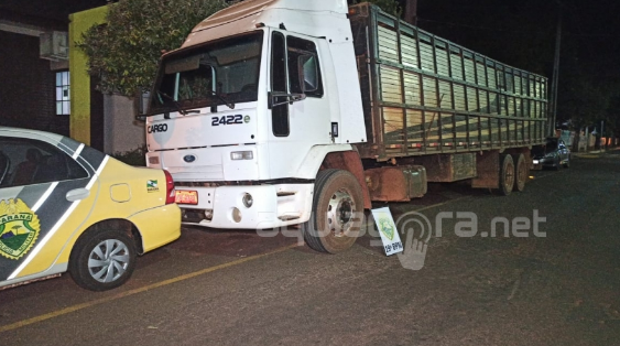 Com a aproximação da viatura da PM, o motorista abandonou o caminhão carregado e fugiu a pé em meio a uma área de vegetação, não sendo mais localizado pelas autoridades policiais.
