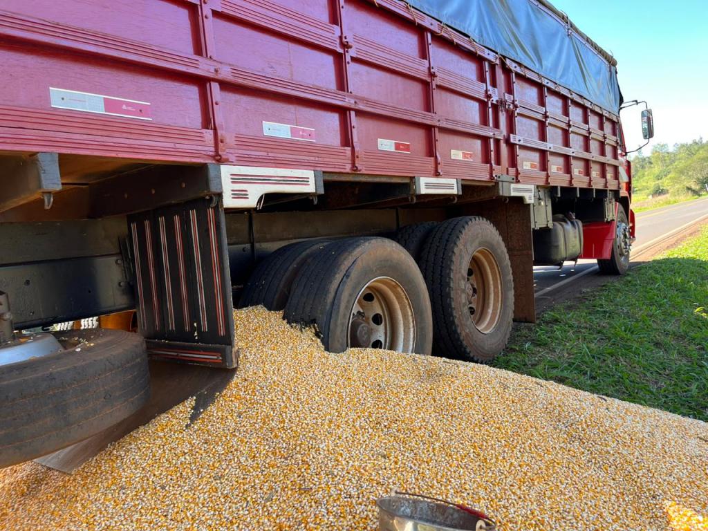 Em dado momento, na tarde de ontem, quarta-feira (02), após a ponte do Rio Guaçu, um pneu traseiro do caminhão acabou estourando, vindo a estourar também a bica do veículo, por onde cerca de 50 sacas de milho acabaram se espalhando pela rodovia.