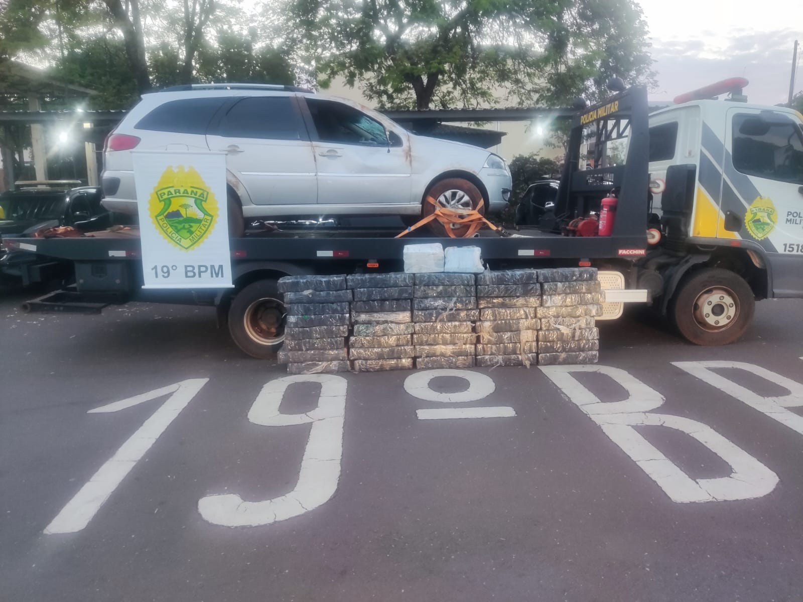 Na madrugada deste sábado (13), por volta das 5h10, uma equipe do 19º Batalhão da Polícia Militar apreendeu cerca de 531,8 kg de maconha durante patrulhamento na rodovia PR-182, entre Toledo e Palotina.