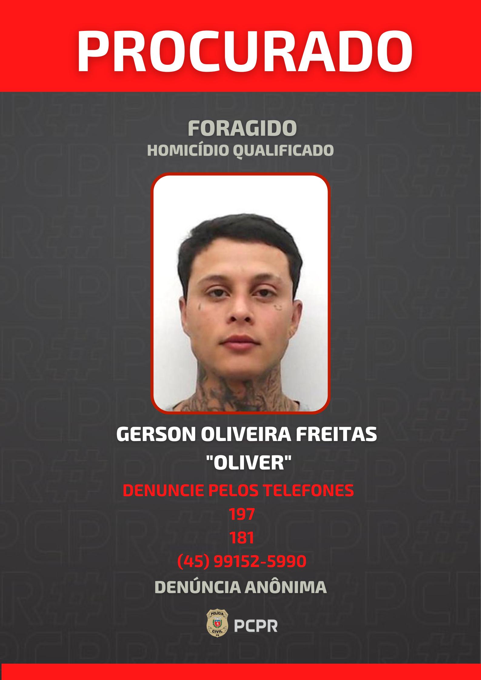 Mandados de Busca e Apreensão foram cumpridos nesta manhã em Toledo visando apreensão da arma de fogo utilizada no delito, bem como o cumprimento da prisão de Gerson, no entanto, nem ele ou a arma de fogo foram localizados, apurando a Polícia Civil que dias após o envolvimento no crime ele deixou a cidade em direção a cidade de Foz do Iguaçu, tendo suspeitas da Polícia de que possa ter ingressado para o Paraguai. Gerson Oliveira Freitas é considerado foragido da Justiça, estando vigente em seu desfavor Mandado de Prisão Temporária expedido pelo Juízo Criminal da Comarca de Toledo pelo delito de Homicídio Qualificado.