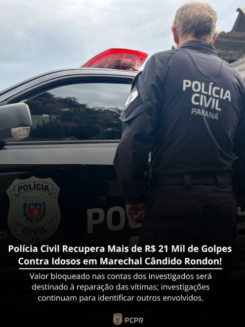 Em desdobramento das investigações conduzidas pela 47ª Delegacia Regional de Polícia de Marechal Cândido Rondon, a Polícia Civil do Paraná obteve importante resultado no combate a crimes patrimoniais praticados contra idosos.