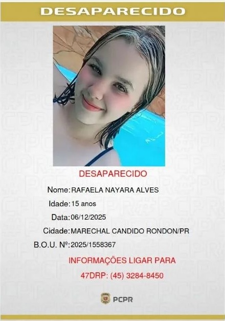 A Polícia Civil divulgou neste final de semana o desaparecimento de uma adolescente de 15 anos em Marechal Cândido Rondon.