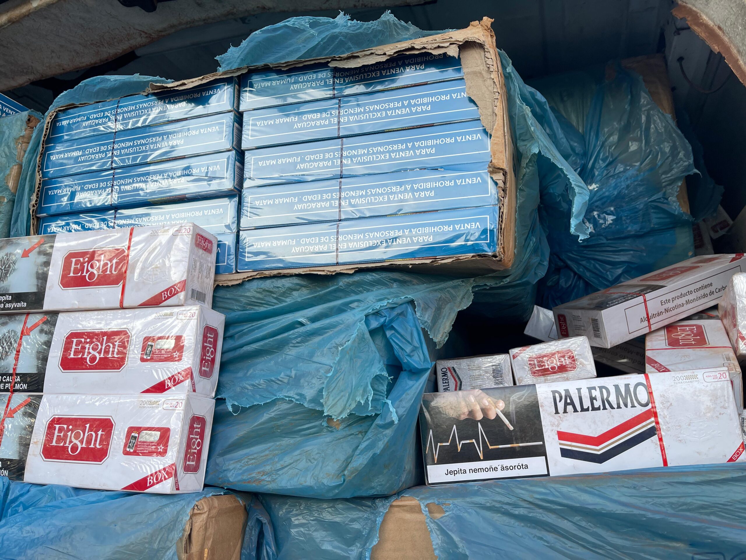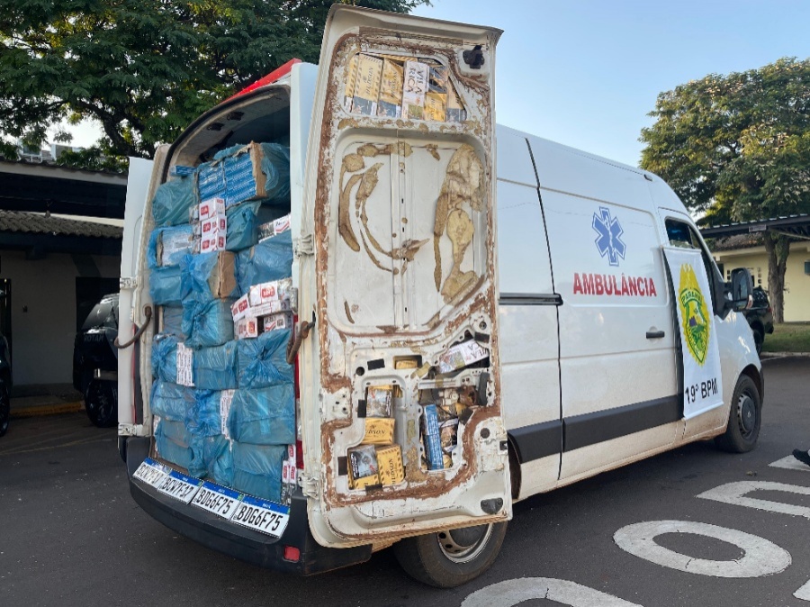 Durante a fiscalização, os policiais descobriram que a ambulância, na verdade, estava sendo utilizada para o transporte ilegal de cigarros. No interior do veículo foram encontradas 170 caixas de cigarros contrabandeadas, além de diversas placas falsas utilizadas para camuflar a verdadeira identidade do veículo.