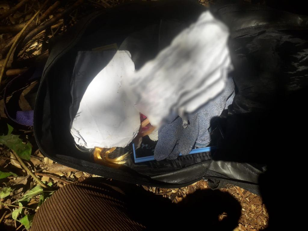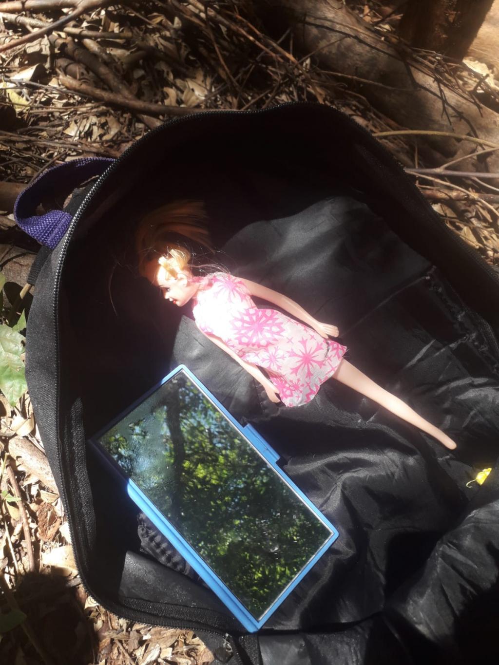 Nas proximidades do local do crime, foi localizada uma bolsa contendo um espelho e uma boneca de plástico. Além disso, uma carteira com a identidade do possível autor foi encontrada nas imediações.