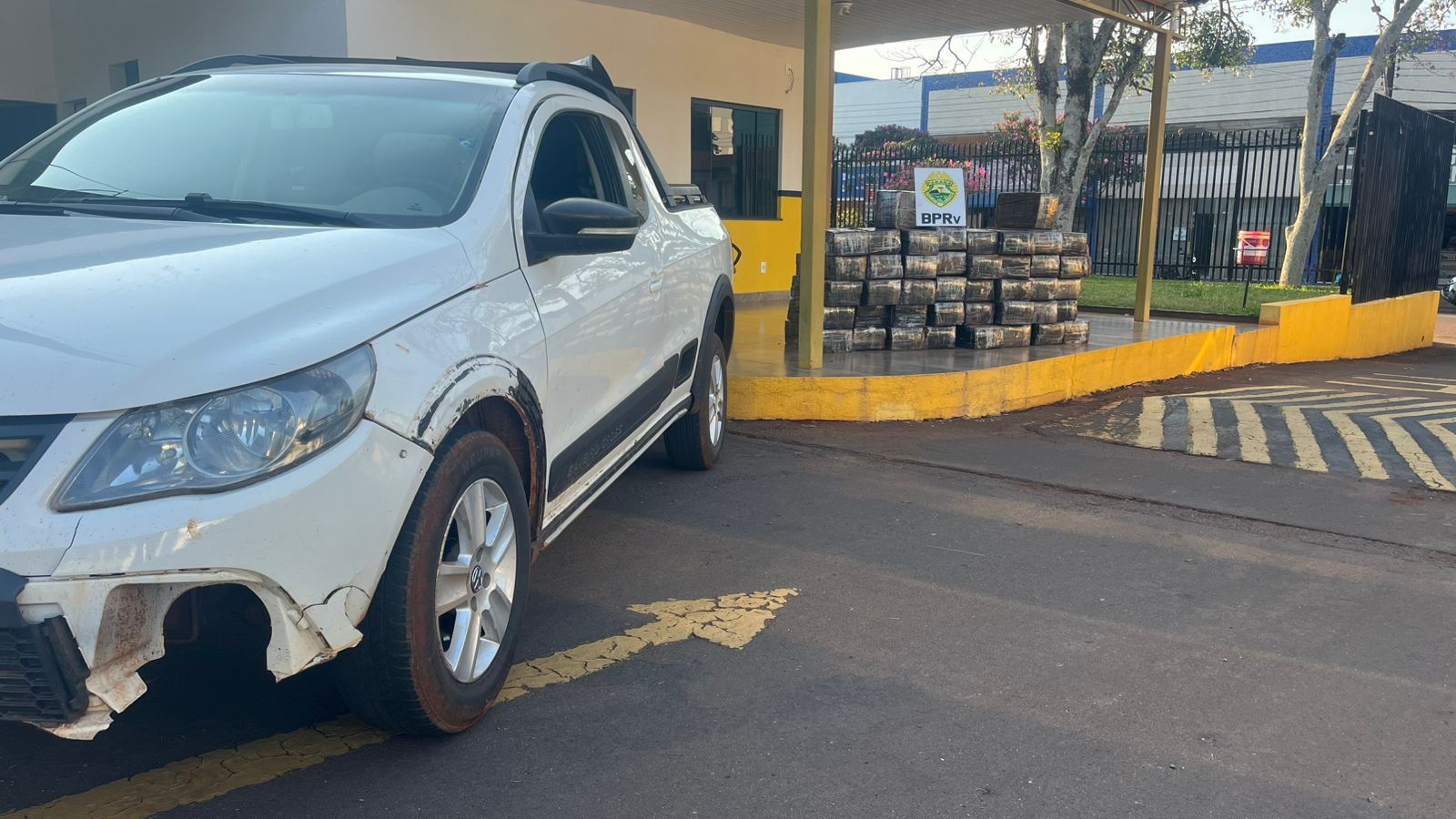 Durante a checagem, constatou-se que a Saveiro estava com placas falsas de Cascavel-PR. Pelo número do chassi, verificou-se que a placa original era de Xanxerê-SC e que o veículo havia sido roubado naquele município em 21 de maio de 2024, conforme Boletim de Ocorrência (B.O) registrado em Santa Catarina.