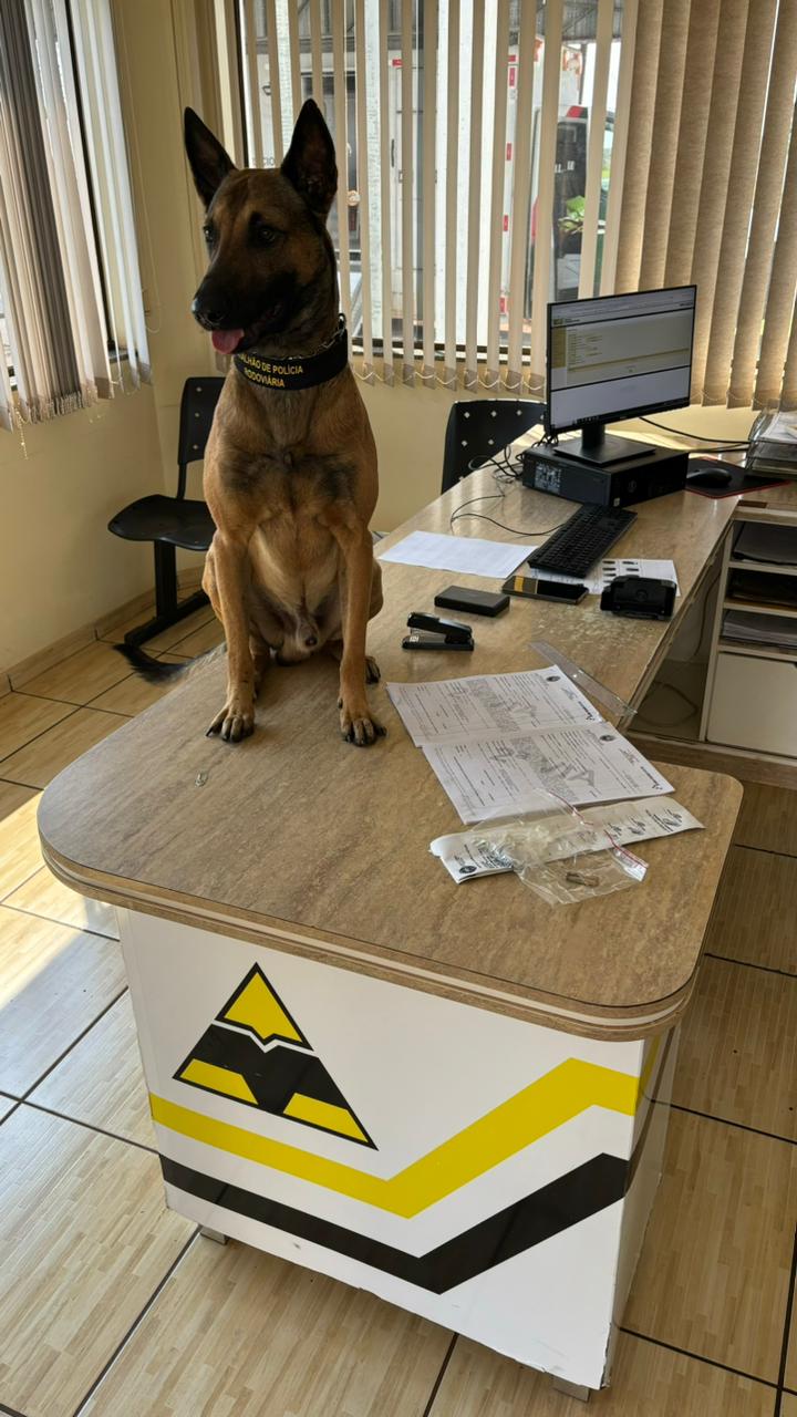 Durante as fiscalizações o cão farejador localizou duas porções de maconha, sendo que duas pessoas possuidoras da droga foram encaminhadas para comparecer em Juízo.