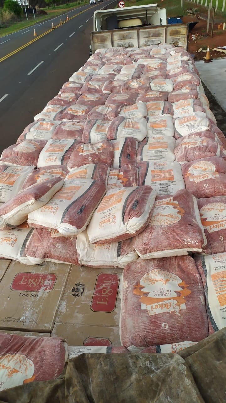 Foi deslocado até o Posto Policial Rodoviário de Iporã, onde foi constatado que em baixo da carga de farinha continham aproximadamente 300 caixas de cigarros.
