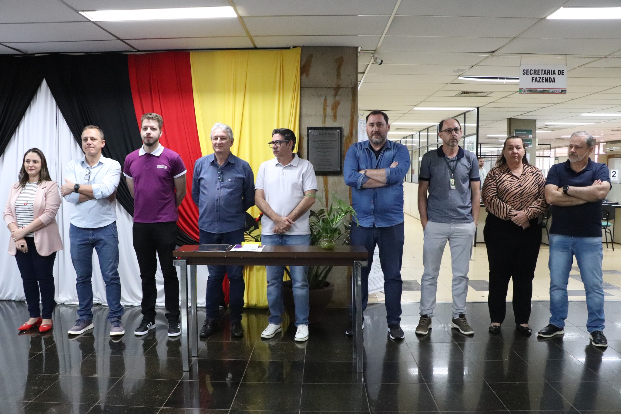 A solenidade de entrega dos certificados foi realizada no saguão da prefeitura e contou com a presença do vice-prefeito Vanderlei Sauer; da secretária de Assistência Social e primeira-dama, Andria Backes; do presidente da Câmara de Vereadores, Valdir Sackser; do presidente do Commur, Carlos Eduardo Steffens Nabinger; além de demais secretários municipais e servidores. O encontro também contou com a participação de alunos da Escola Municipal Ana Paula, que declamaram um poema.