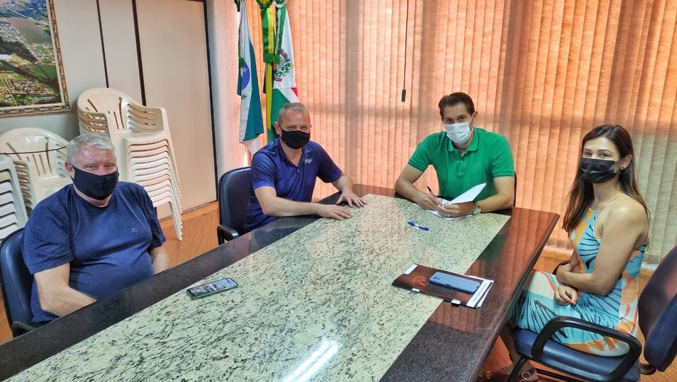 O prefeito Marcio Rauber, o vice Ilario Hofstaetter (o Ila) e a secretária de Assistência Social, Josiane Laborde Rauber, receberam na sala de reuniões do gabinete, nesta terça-feira, dia 14, o presidente da Associação de Pais e Amigos dos Excepcionais (APAE), Roberto Thomé (Beto). Na oportunidade, aconteceu a assinatura de um termo aditivo ao termo de fomento assinado no início do ano, que garante a construção de cobertura metálica em frente à escola, no espaço de embarque e desembarque de alunos, seus familiares e cuidadores.