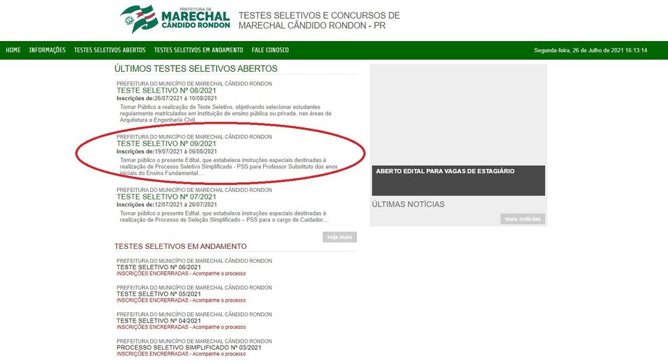 A prefeitura de Marechal Rondon divulgou edital onde estabelece instruções especiais destinadas à realização de Processo Seletivo Simplificado – PSS – para cadastro de reserva para professor substituto dos anos iniciais do ensino fundamental.
