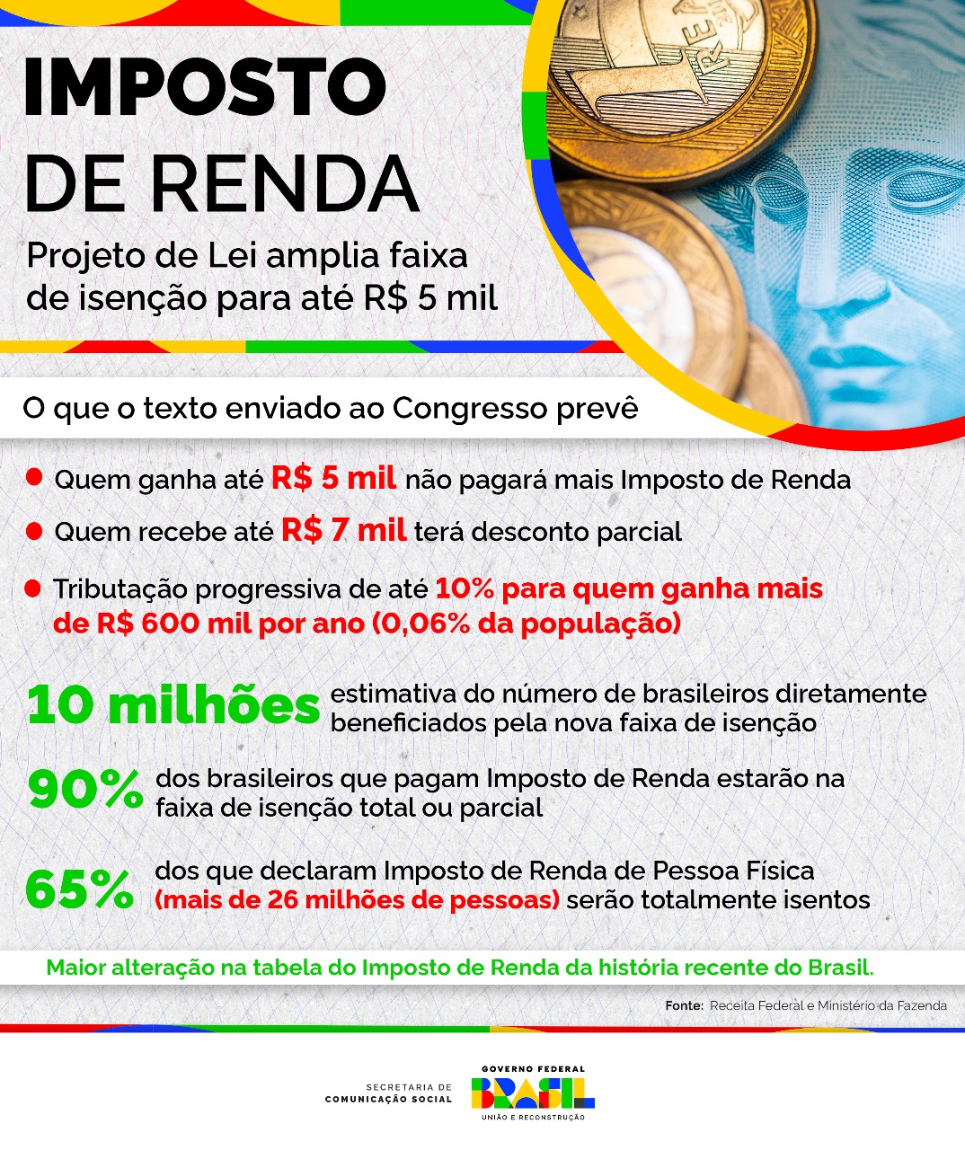Cerca de 10 milhões de brasileiros serão beneficiados diretamente pela medida, que é uma promessa de campanha do presidente Lula. Somando essas pessoas aos 10 milhões já beneficiados pelas mudanças feitas pelo Governo Federal em 2023 e 2024, serão 20 milhões de pessoas que deixam de pagar Imposto de Renda desde o início da atual gestão.