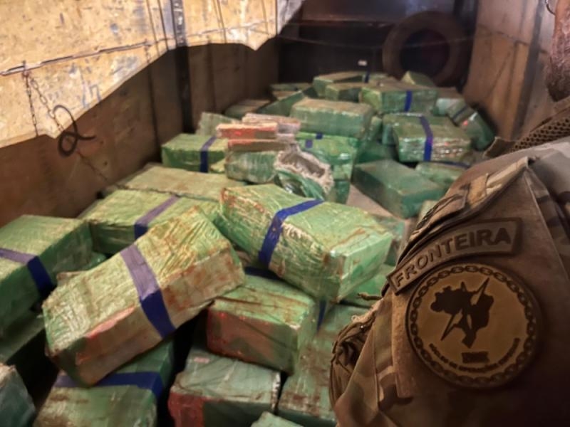 No entanto, ao inspecionarem a carroceria, os policiais encontraram diversos fardos da droga.