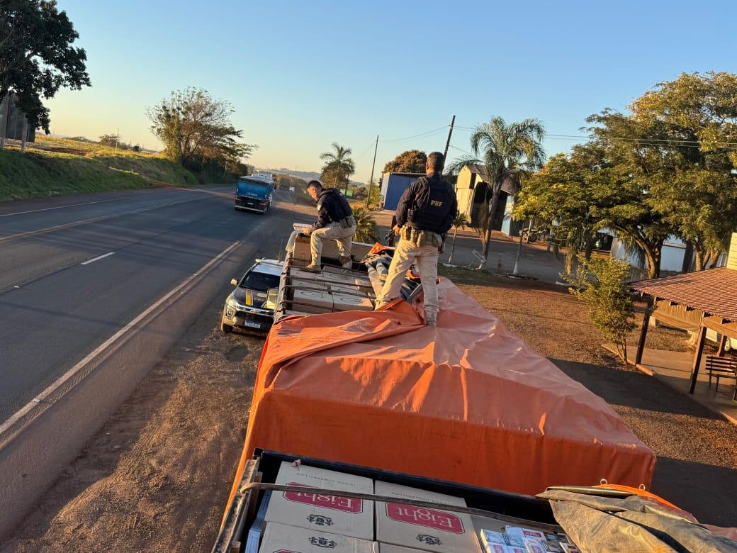 A Polícia Rodoviária Federal (PRF) apreendeu, na manhã desta terça-feira (12), aproximadamente 600 mil maços de cigarros de origem estrangeira, transportados ilegalmente em um caminhão na BR-163, em Mercedes (PR).