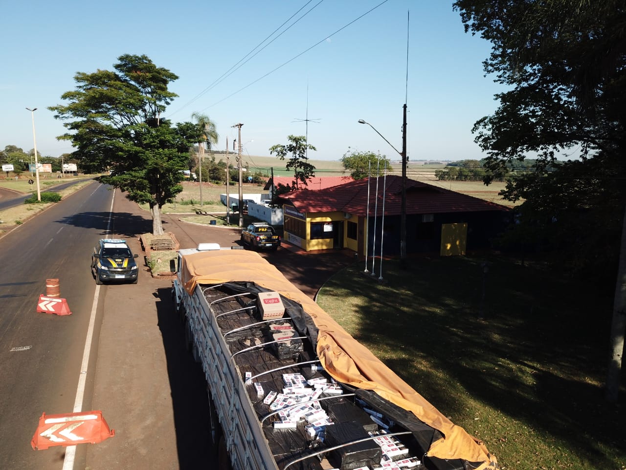 Na manhã desta quinta-feira (05) na BR-163, em Quatro Pontes, agentes da Policia Rodoviária Federal deram ordem de parada para uma Scania/T112H e durante vistoria foram encontradas aproximadamente 600 caixas de cigarros, totalizando 300.000 (trezentos mil maços) da marca Eight, oriundos do Paraguai.