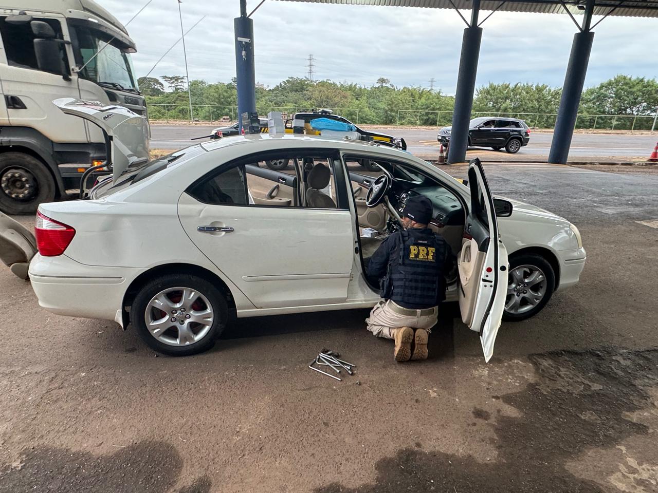 Em fiscalização ao veículo Toyota/Premio, placas paraguaias, condutor, paraguaio de 35 anos, apresentou nervosismo quando equipe resolveu iniciar fiscalização mais detalhada.