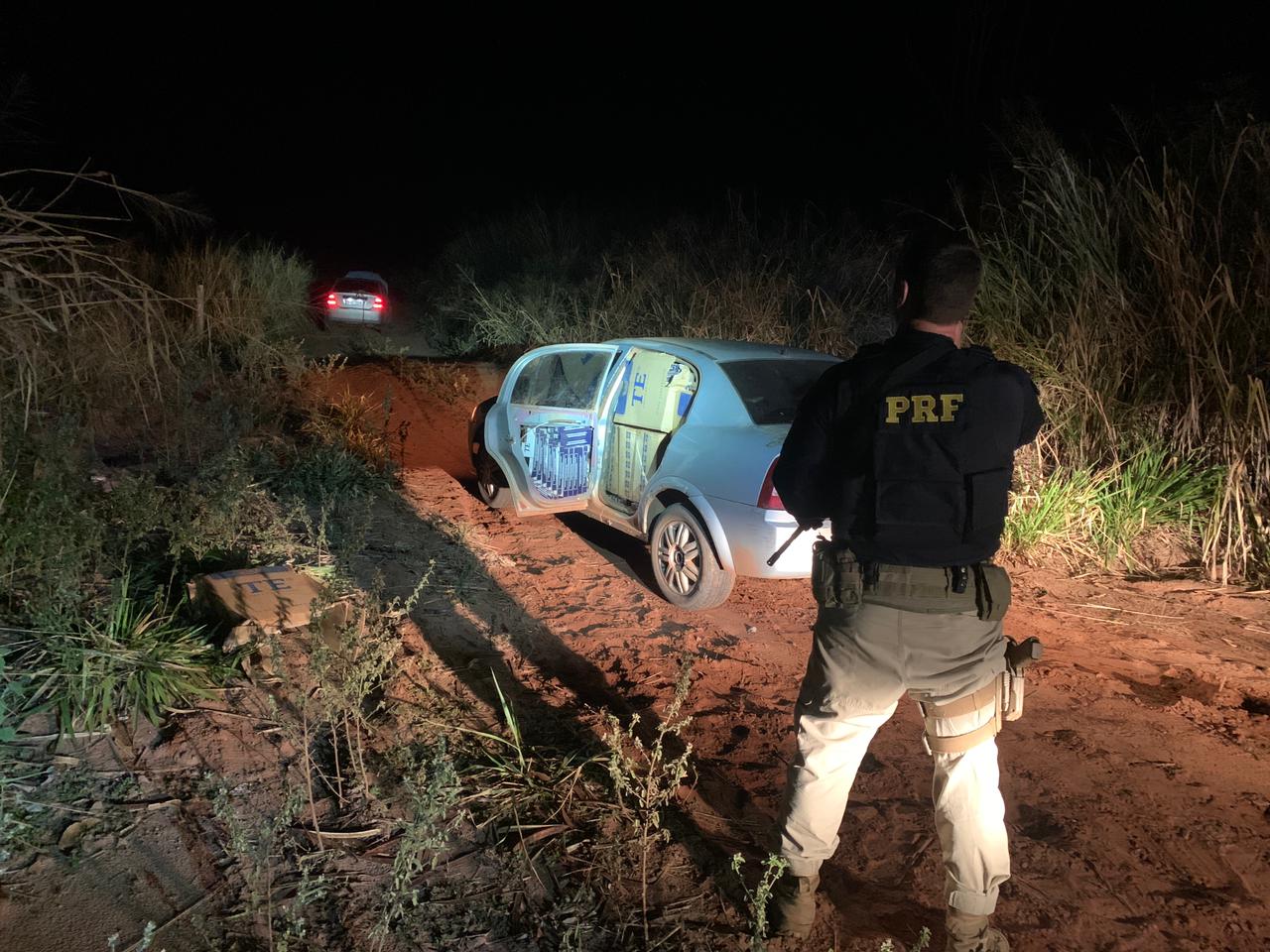 Após desobedecer a ordem de parada dos policiais, os condutores abandonaram os automóveis e se esconderam em uma região de mato.