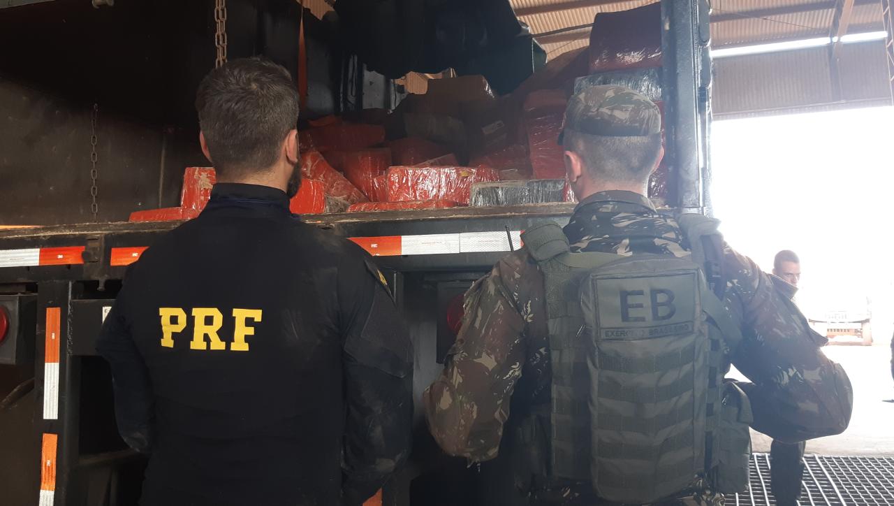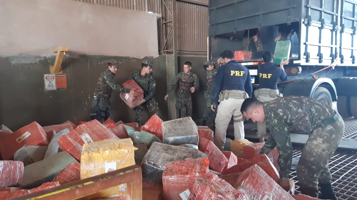 O Exército Brasileiro prestou apoio à PRF na logística de encaminhamento da droga.