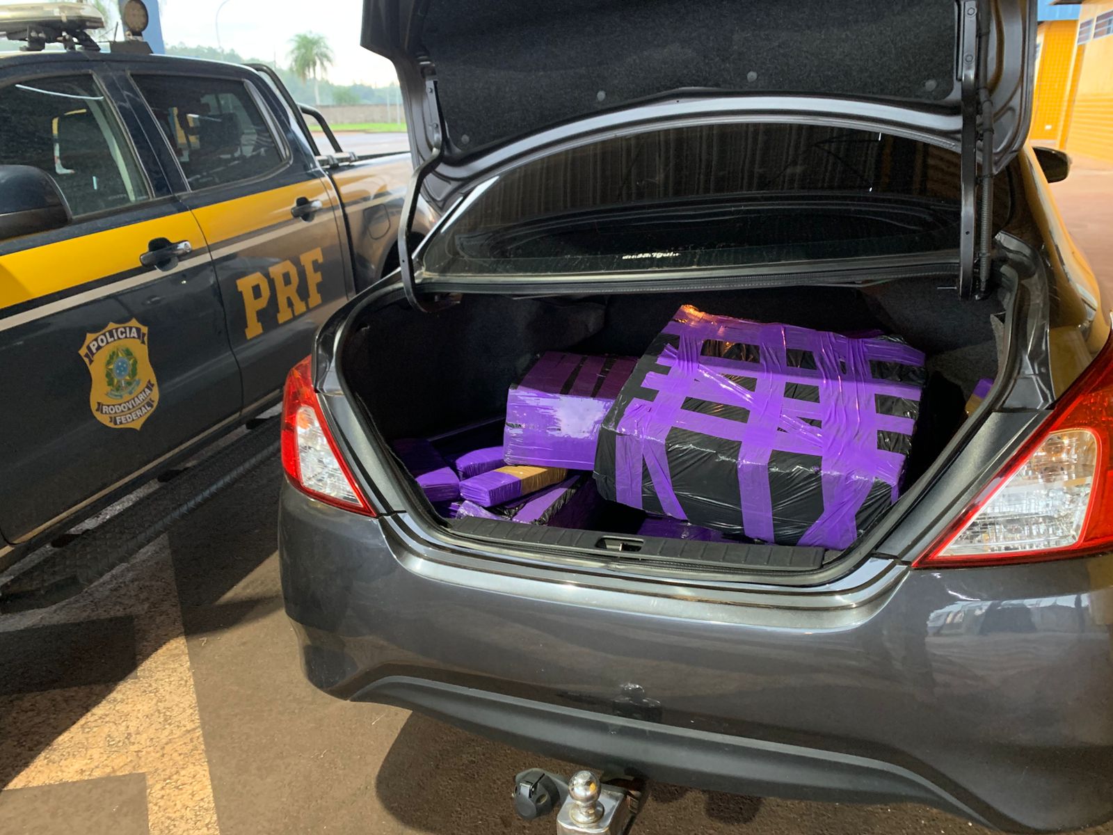 Já na manhã de sexta-feira (21), às 6h30, no km 559 da BR-272, em Guaíra (PR), a PRF apreendeu 236 quilos de maconha que estavam escondidos no porta-malas de um Nissan Versa. Durante a vistoria, foram localizados os diversos tabletes da droga.