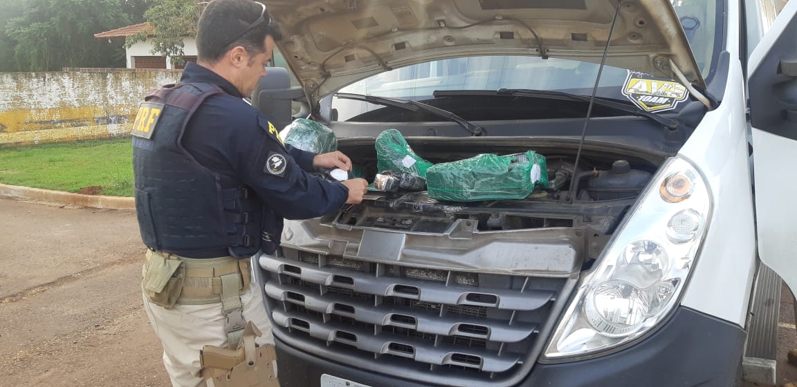O contrabando, avaliado em mais de 200 mil reais, estava escondido no compartimento do motor de uma Van. Um homem de 21 anos foi detido