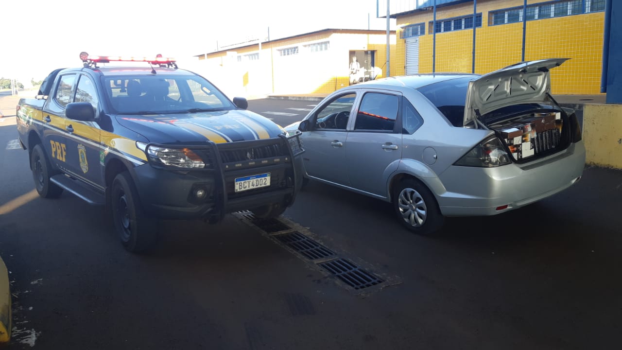 A Polícia Rodoviária Federal (PRF) apreendeu grande quantidade de produtos eletrônicos e cigarros de origem paraguaia, em Mercedes (PR), por volta das 16h desta segunda-feira (30), que era transportado em um veículo Ford Fiesta Sedan.