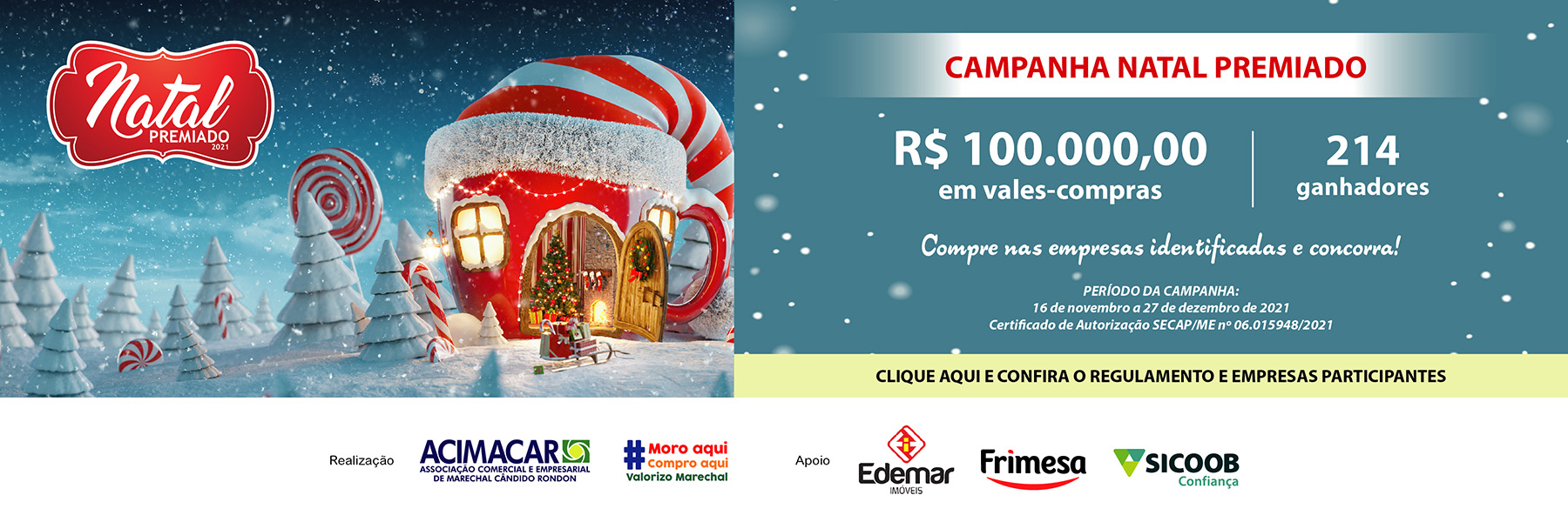 Para concorrer aos prêmios, basta realizar compras em uma das 236 empresas participantes do Natal Premiado Acimacar, que estão identificadas com cartazes da campanha e preencher os cupons.