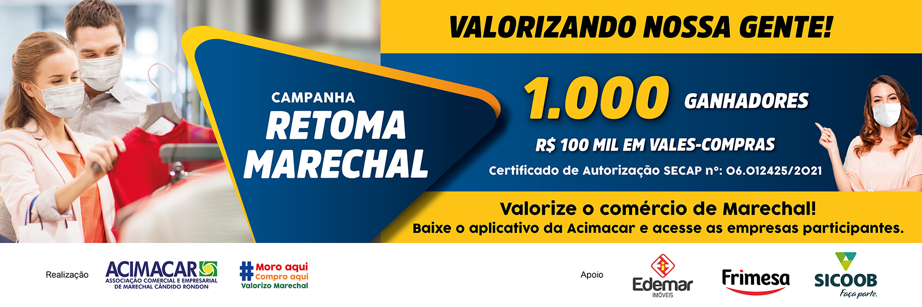 Acontece hoje no final da tarde o primeiro sorteio da Campanha Retoma Marechal 2021, promovida pela Associação Comercial e Empresarial de Marechal Cândido Rondon .