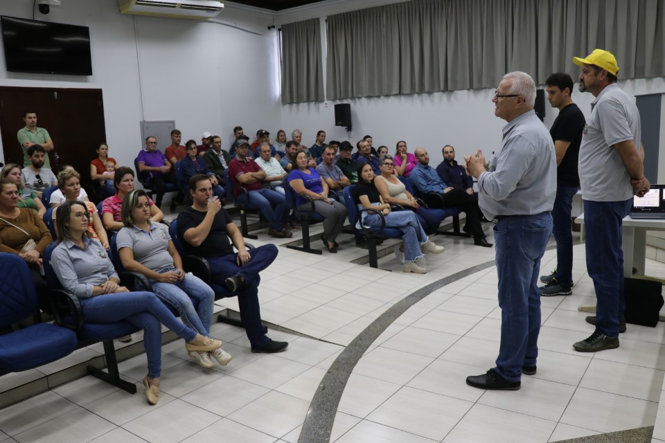 A reunião contou com a participação do prefeito Leomar Rohden, o Mano, vice-prefeito, John Nodari, vereador Dante Mundt, diretor do departamento de Fomento Agropecuário, Jair de Souza, técnico do Instituto de Desenvolvimento Rural (IDR), Adilson Winter, representantes de cooperativas, do ramo de grãos e de escritórios de contabilidade, além do grande número de produtores, que apresentaram suas dúvidas. O objetivo foi informar e prestar todos os esclarecimentos necessários.