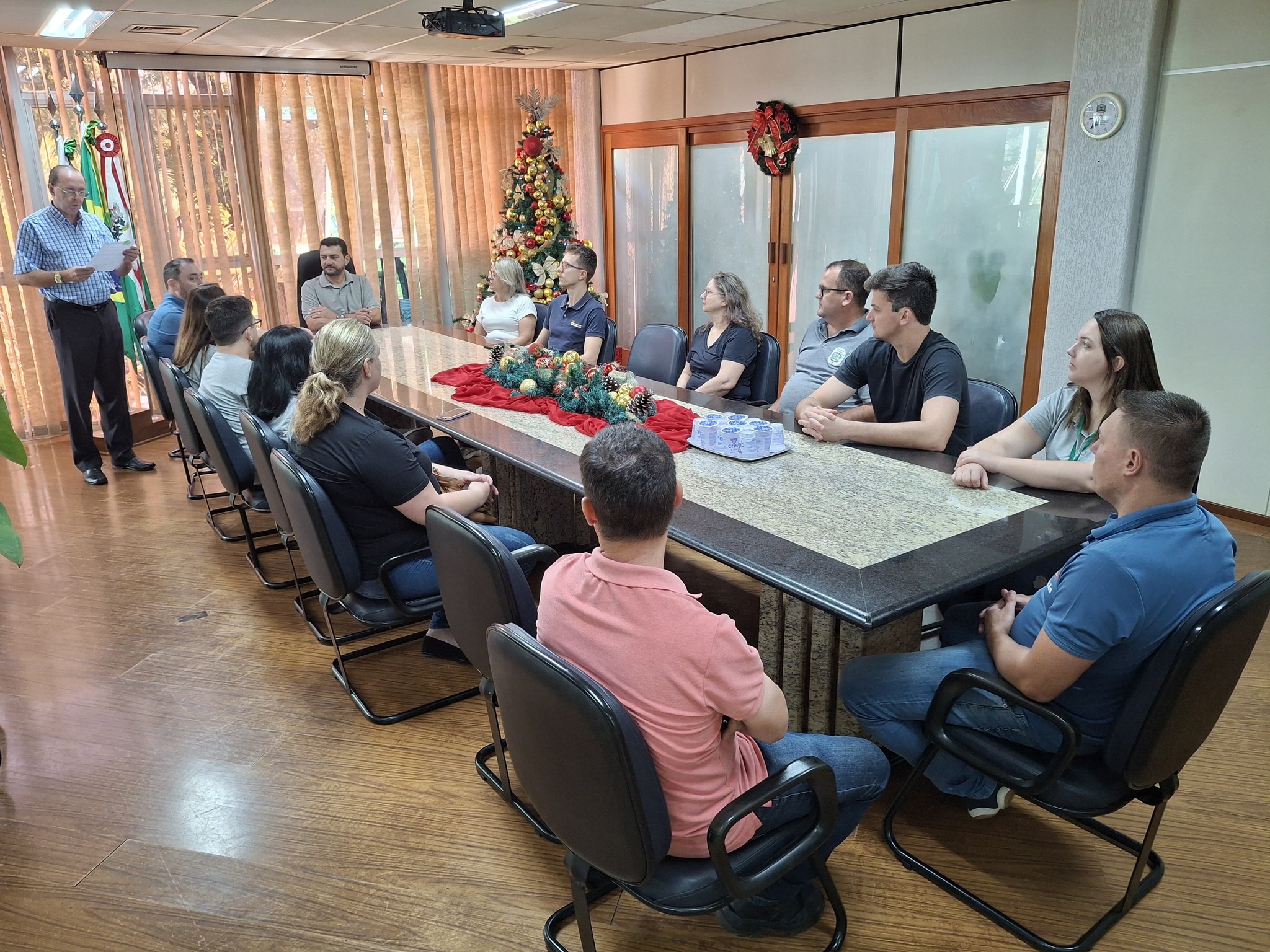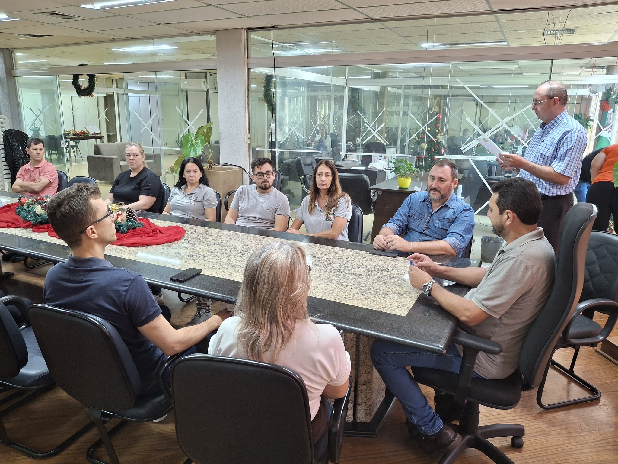 A solenidade ocorreu no paço municipal, e foi conduzida pelo prefeito Adriano Backes, com a presença do secretário municipal de Educação, João Klein, além de demais servidores municipais.
