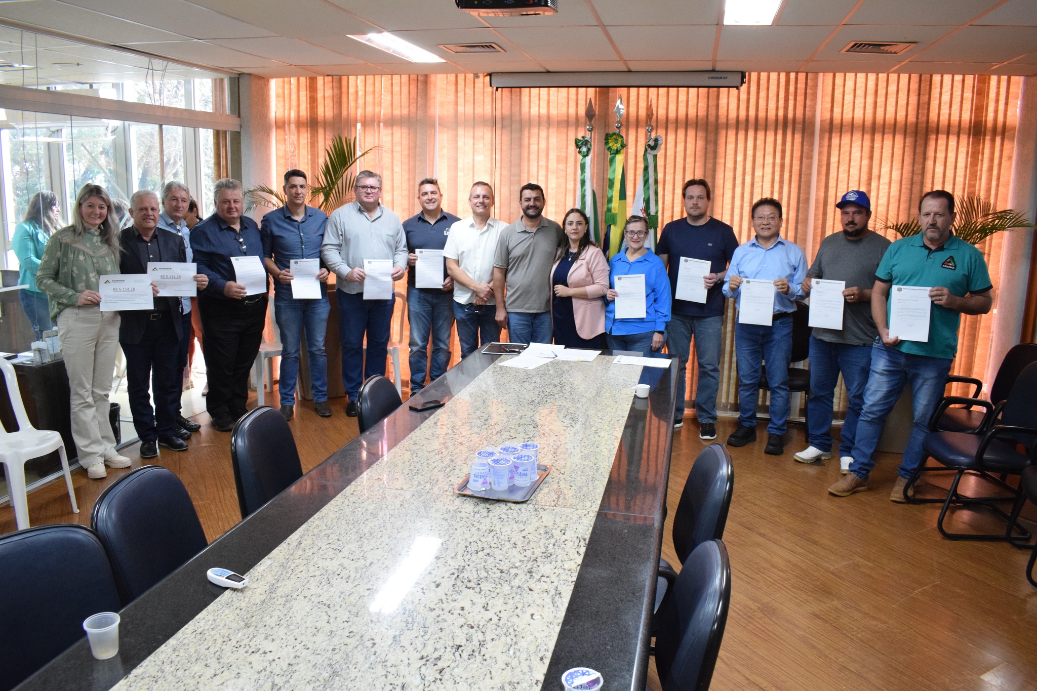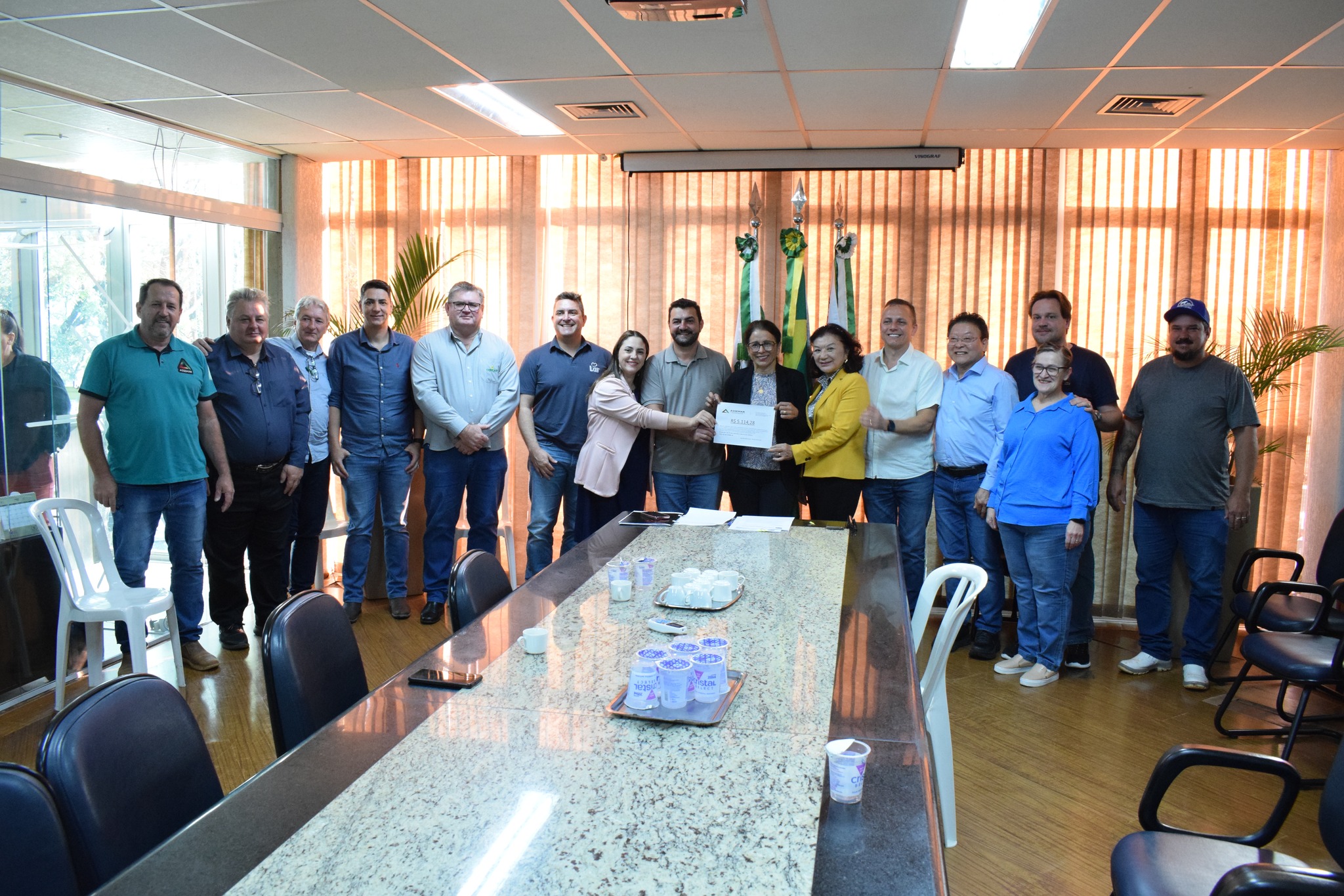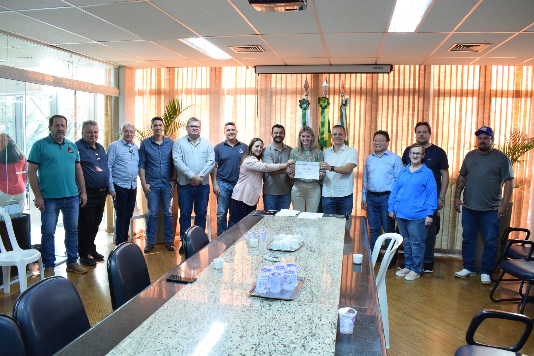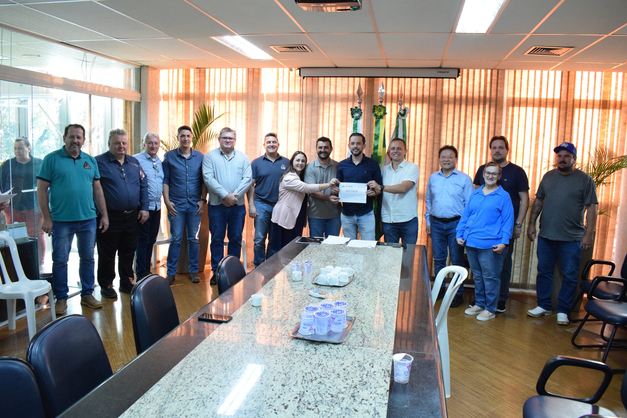 O prefeito Adriano Backes, o vice-prefeito Vanderlei Sauer e a secretária de Assistência Social e primeira-dama, Andria Backes, receberam na prefeitura os representantes das instituições beneficiadas com a feijoada beneficente. Também participaram do encontro secretários municipais, além de demais servidores e representantes da Acimacar e da PROEM.