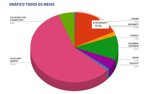 Segundo o levantamento, foram investidos R$ 2,9 bilhões em compra de mídia no Brasil no primeiro trimestre de 2020. De acordo com o relatório do Cenp-Meios, houve uma queda de 22% em comparação ao montante de R$ 3,7 bilhões no mesmo período de 2019.