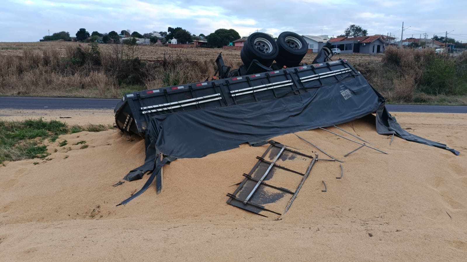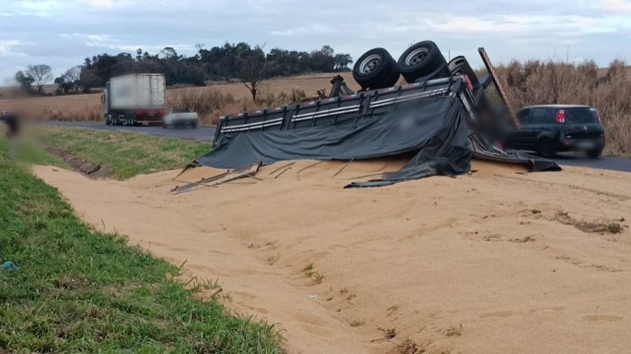 Segundo informações repassadas pela Polícia Rodoviária Federal (PRF), o caminhão Volvo, do tipo bitrem, seguia em direção a Cascavel, quando saiu do leito da rodovia por motivos ainda não esclarecidos. Ao tentar retornar à pista, o segundo reboque se desengatou do cavalo mecânico e virou, deixando a carga espalhada pelo asfalto.