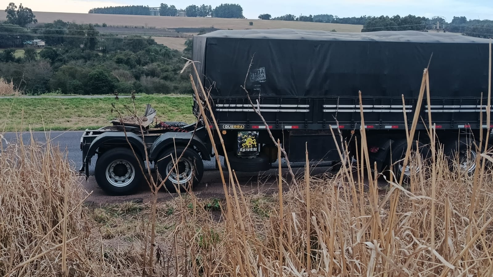 O tráfego na rodovia BR-163, entre Toledo e Cascavel-PR, foi parcialmente comprometido na tarde desta quarta-feira (06), após o tombamento de um reboque carregado com farelo de soja. O incidente ocorreu durante uma manobra do condutor para retornar à pista, após sair do asfalto.