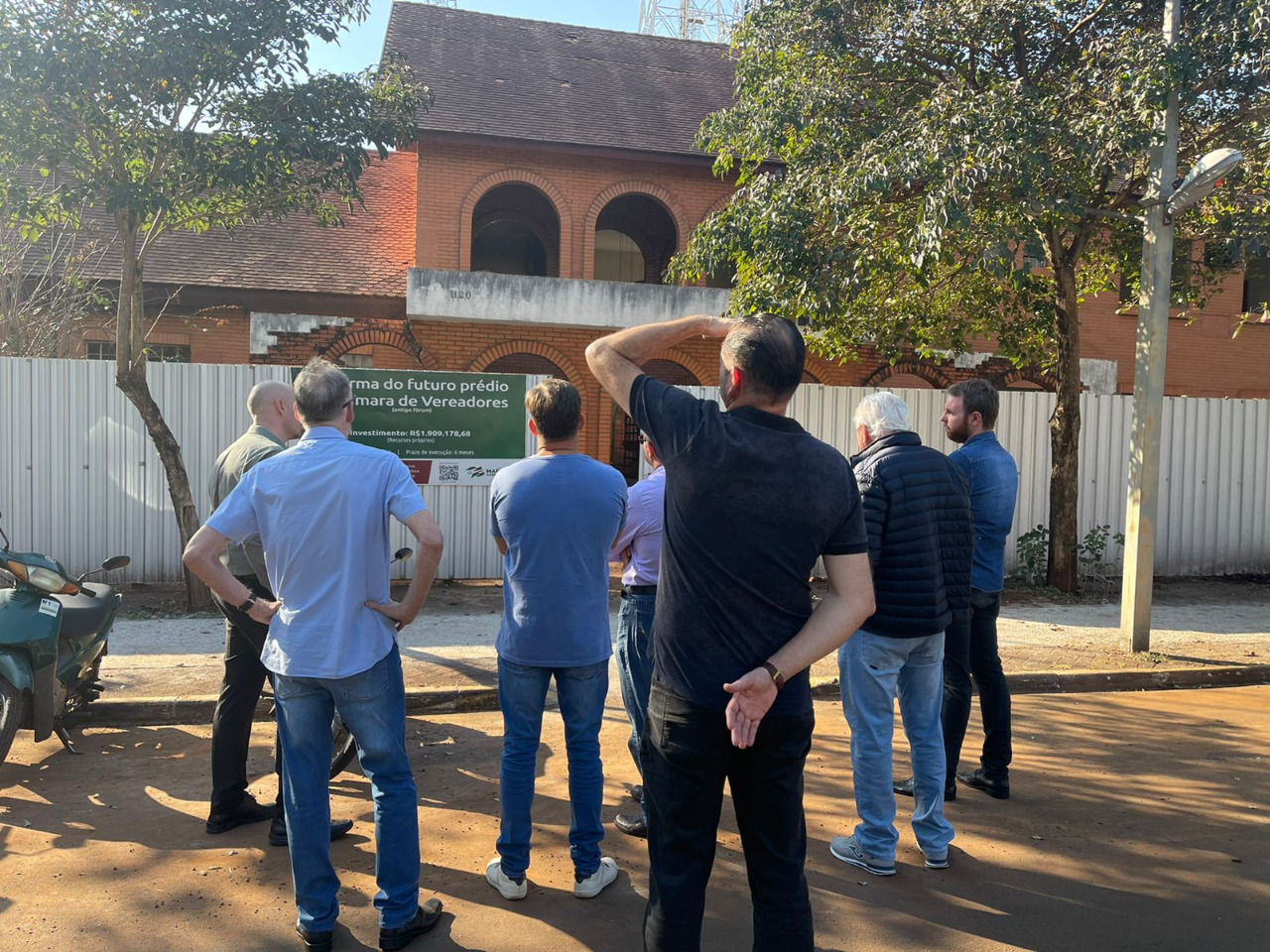 Na manhã de hoje (15), os vereadores presidente Pedro Rauber, Dionir Briesch (Sargento Dionir), Cristiano Metzner (Suko) e Vanderlei Sauer (Soldado Sauer), juntamente com diretores, servidores e assessores da Casa Leis, visitaram as obras, acompanhados do secretário municipal de Coordenação e Planejamento, Alisson Ostjen.