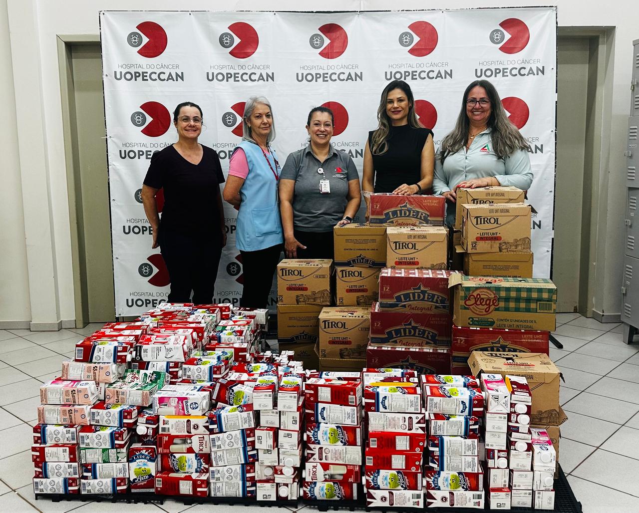 O município de Marechal Cândido Rondon repassou nesta terça-feira, dia 15, cerca de 880 litros de leite longa vida para o Hospital do Câncer UOPECCAN, de Cascavel. Os donativos foram arrecadados com a venda dos ingressos solidários da 34ª Oktoberfest, que encerrou no sábado, dia 12. Entre os presentes no repasse estiveram a secretária de Assistência Social, Josiane Laborde Rauber, e a secretária da Assemar (Associação dos Servidores Públicos Municipais), entidade responsável pela comercialização dos ingressos, Carla Freitag.