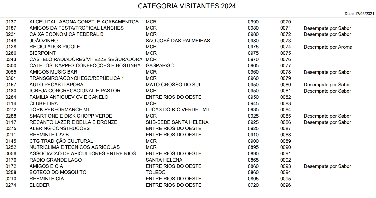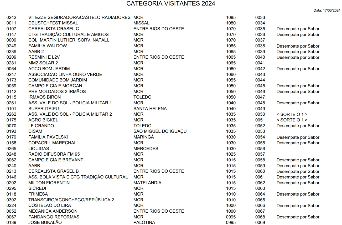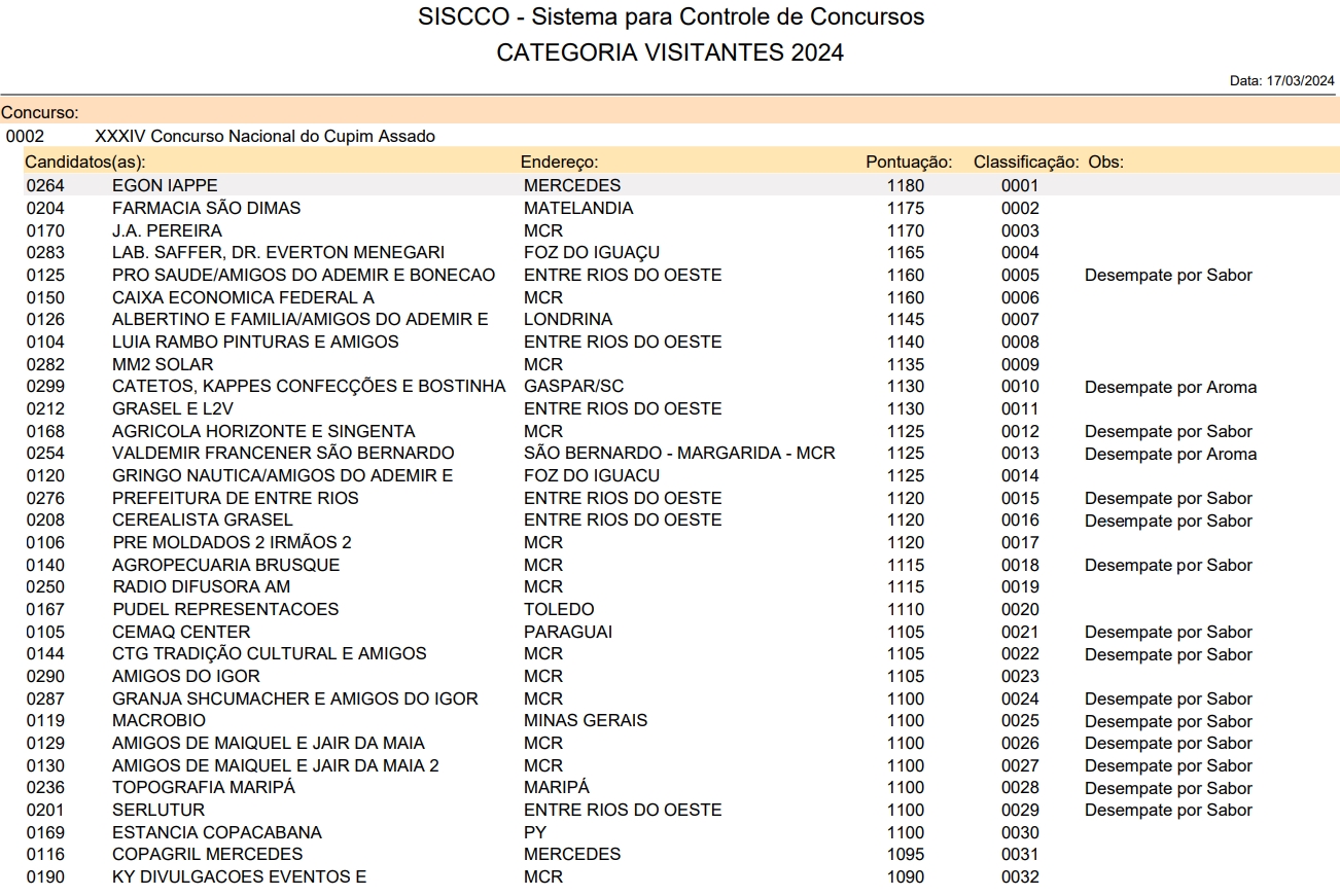 Aconteceu no último domingo (17) o 34.º Concurso Nacional do Cupim Assado de Pato Bragado. O concurso contou com 234 equipes inscritas, divididas em 138 equipes na categoria local e 96 na categoria visitante.