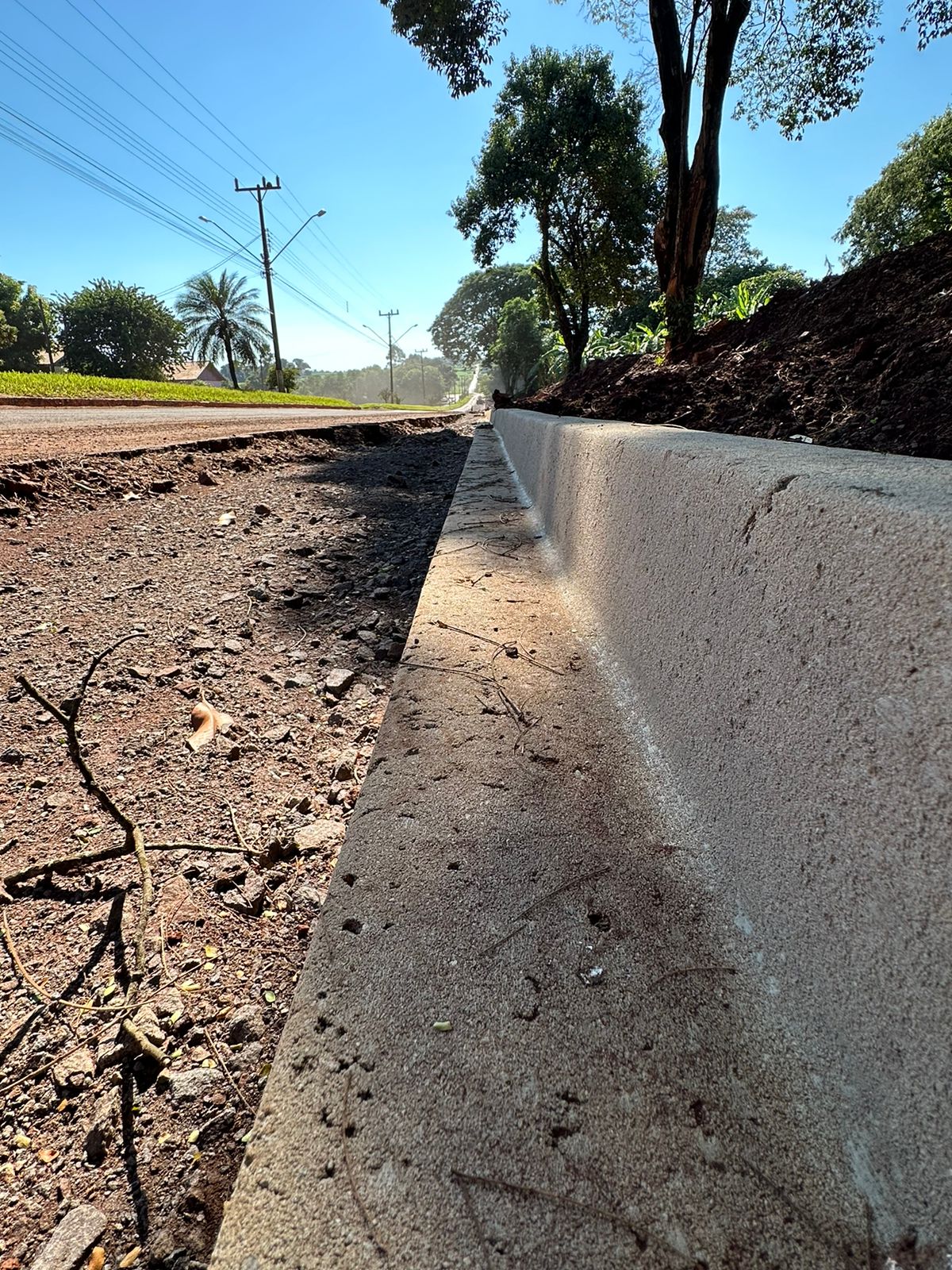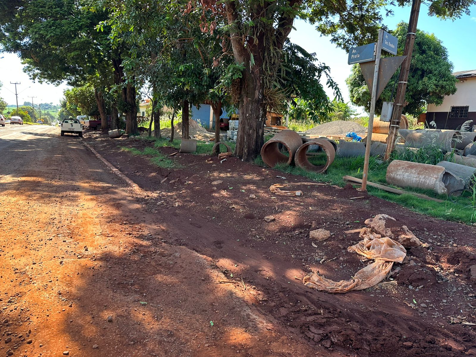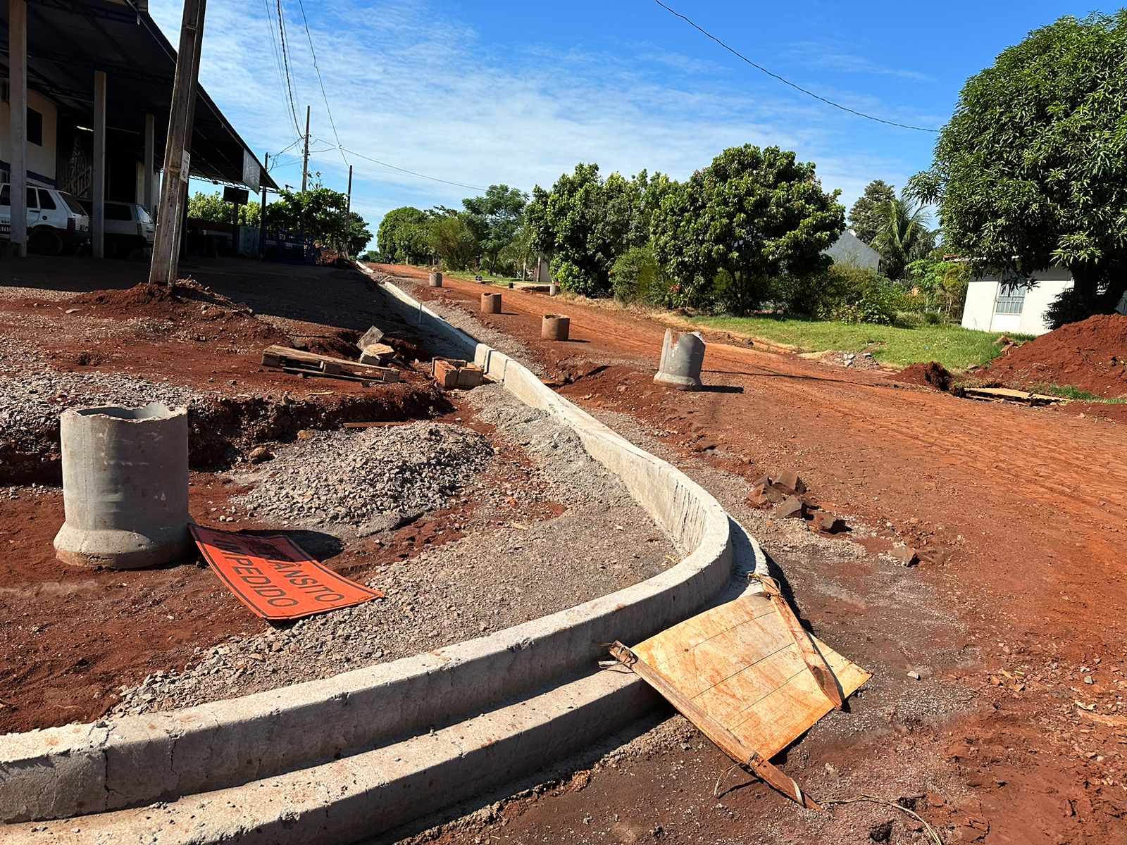 No atual momento da obra está sendo realizada a drenagem e terraplanagem dos pontos necessários, em alguns locais também está sendo colocada a fileira de pedras que faz a borda da calçada, popularmente chamada de meio-fio.