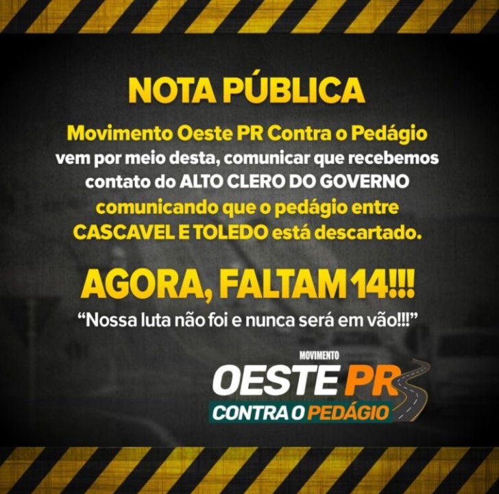 A lista a ser assinada é denominada “Abaixo-assinado das lideranças políticas, empresariais e de cidadãos da região oeste do Paraná que se manifestam contrários à construção das Praças de pedágio entre as cidades de Toledo e Cascavel e entre Marechal C Rondon e Guaíra” para