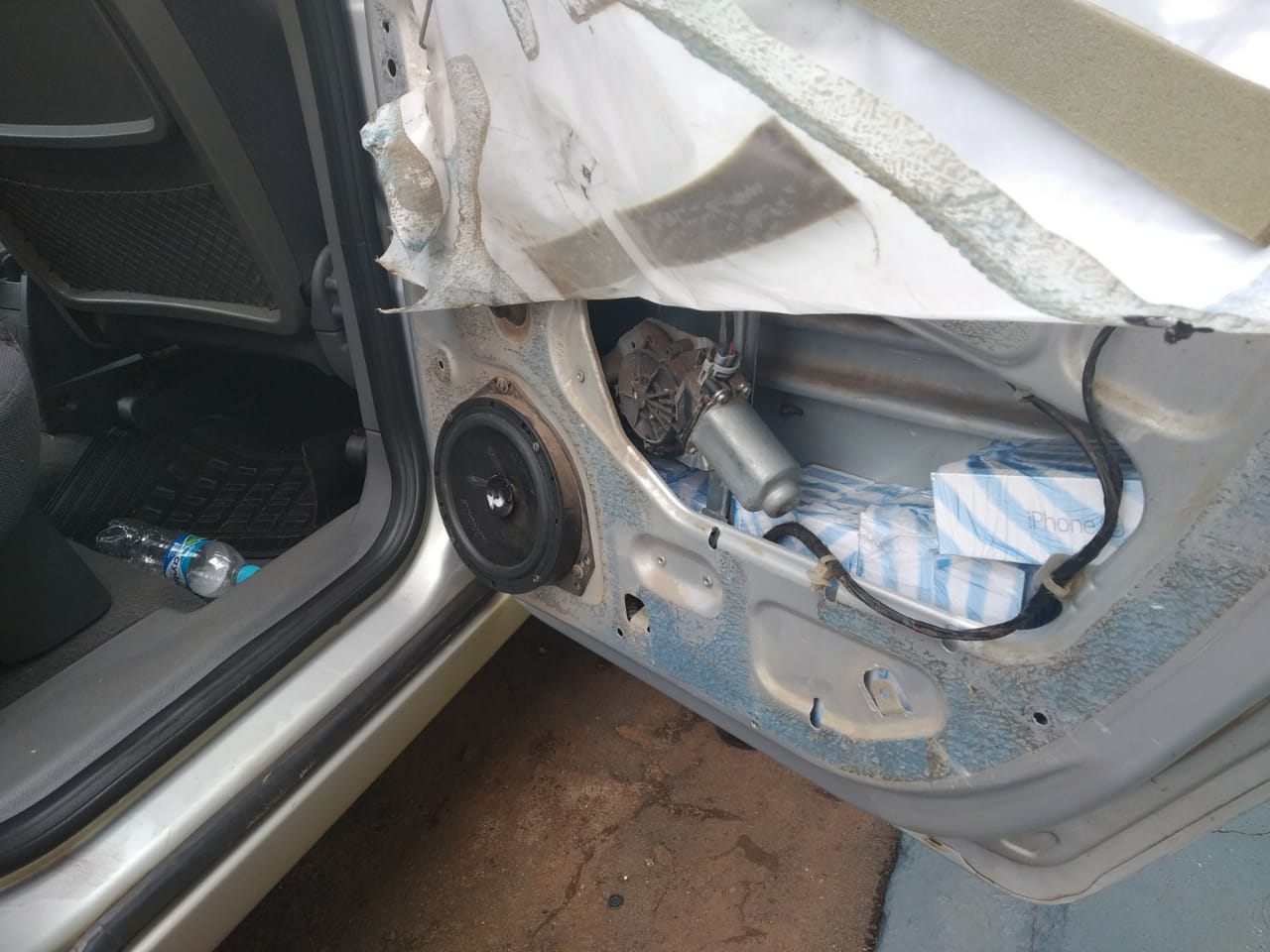 Nesses compartimentos foram localizados e apreendidos 49 aparelhos celulares de diversas marcas, todos contrabandeados do Paraguai.