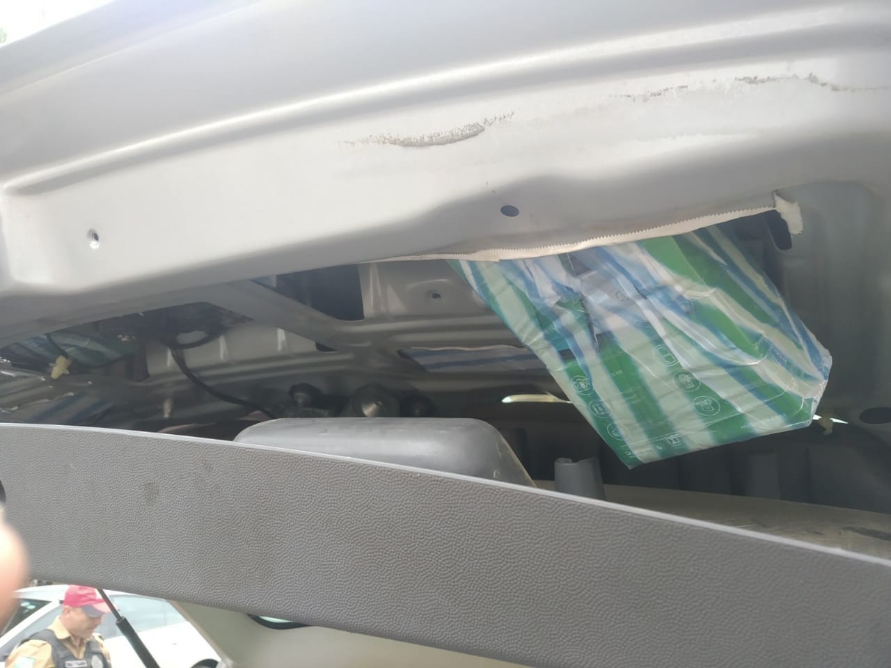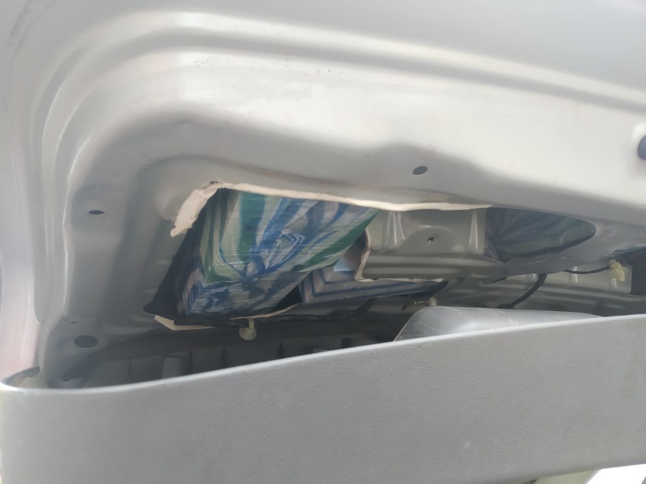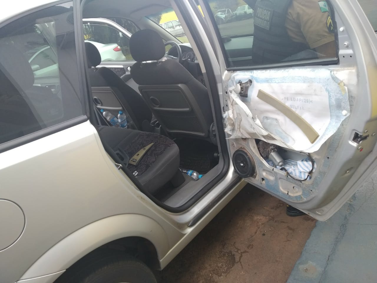 Durante vistoria no carro, os policiais perceberam nervosismo excessivo do condutor e decidiram realizar uma vistoria mais completa, quando descobriram fundos falsos, na forração das portas do carro.