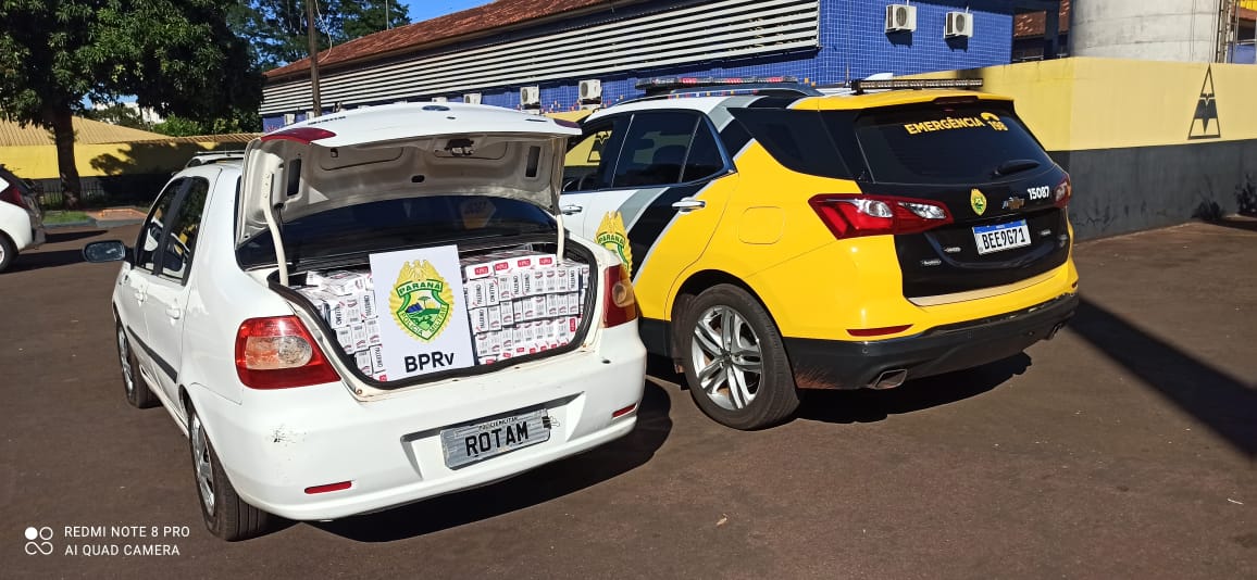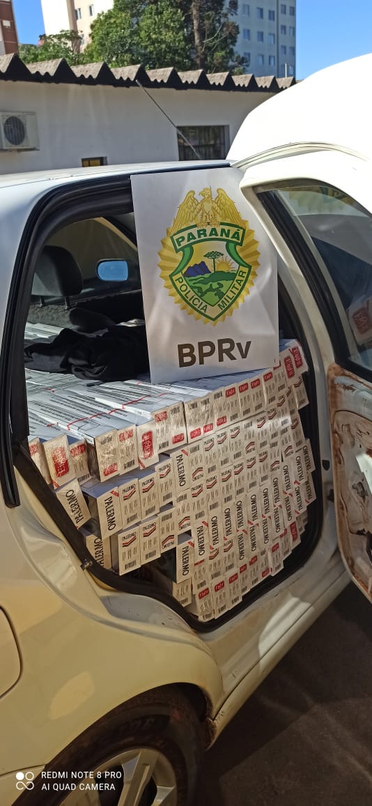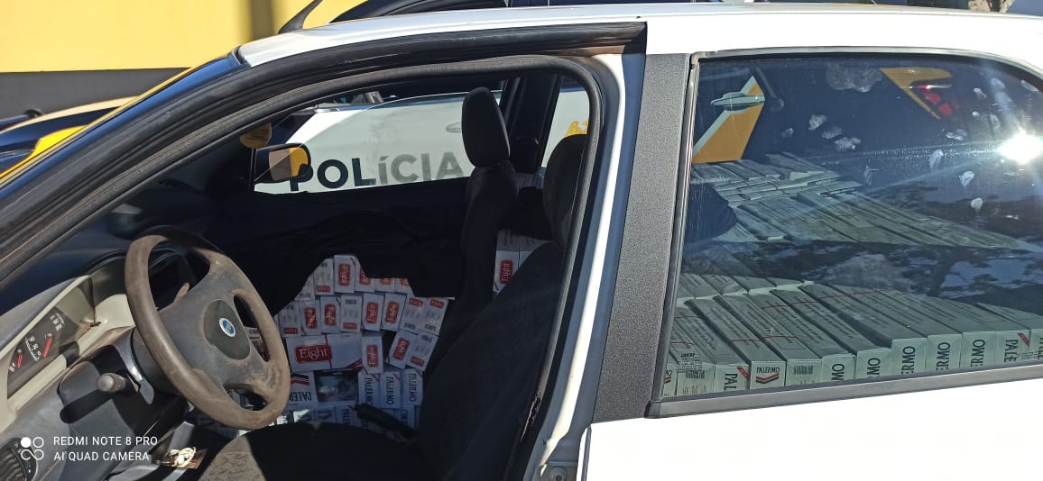 A operação aconteceu na PR 585, próximo ao município de São Pedro do Iguaçu, quando militares abordaram um veículo Fiat Siena, placas de Cascavel e em revista veicular, encontraram no porta-malas e interior, aproximadamente 12.500 maços de cigarros de origem estrangeira.