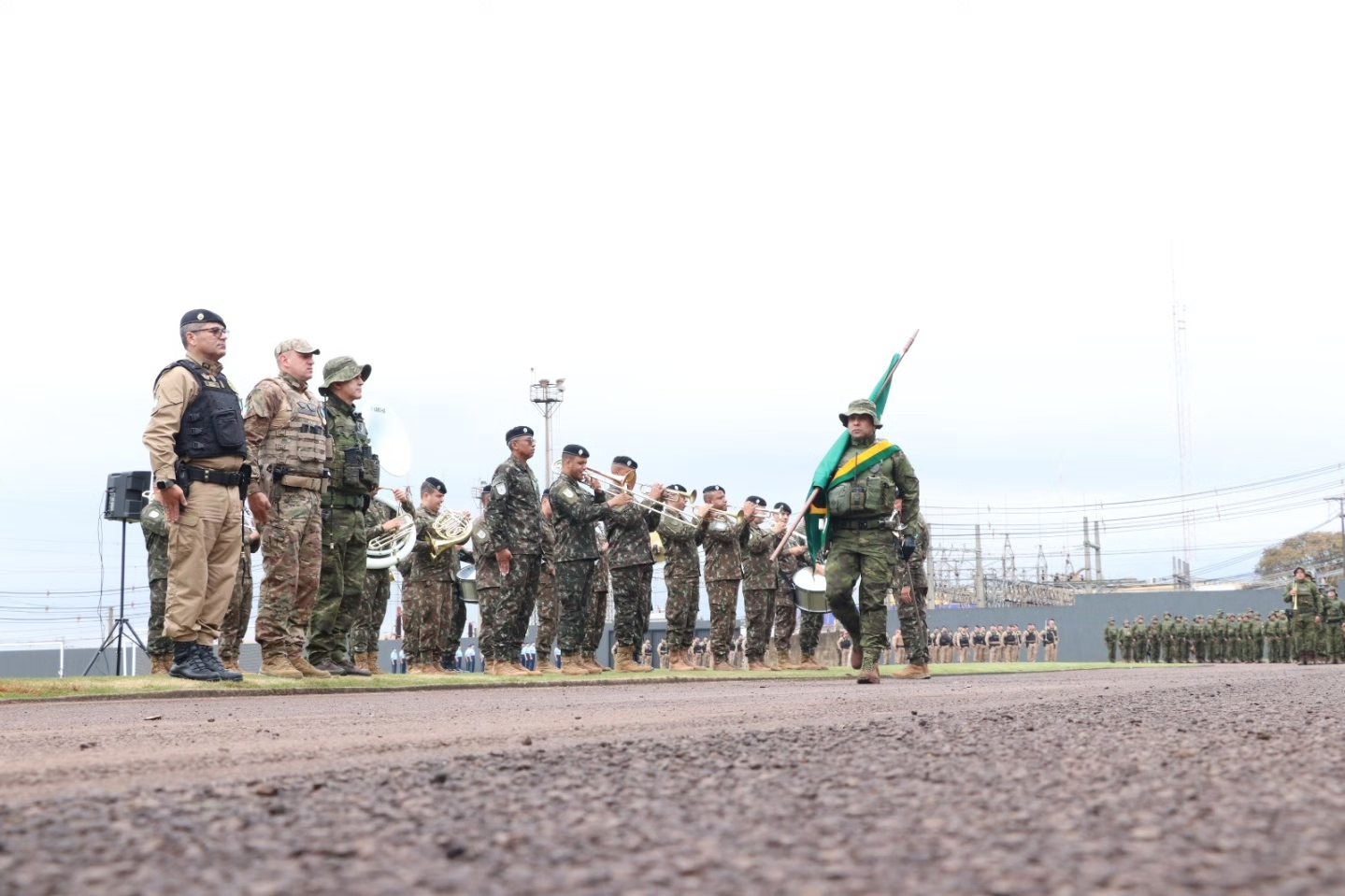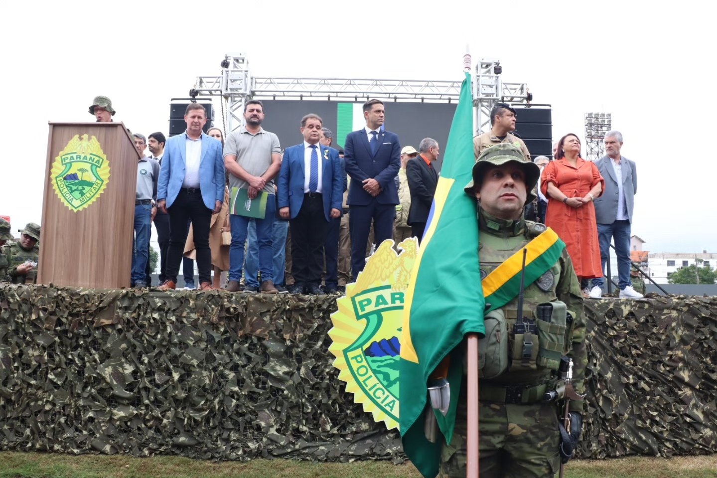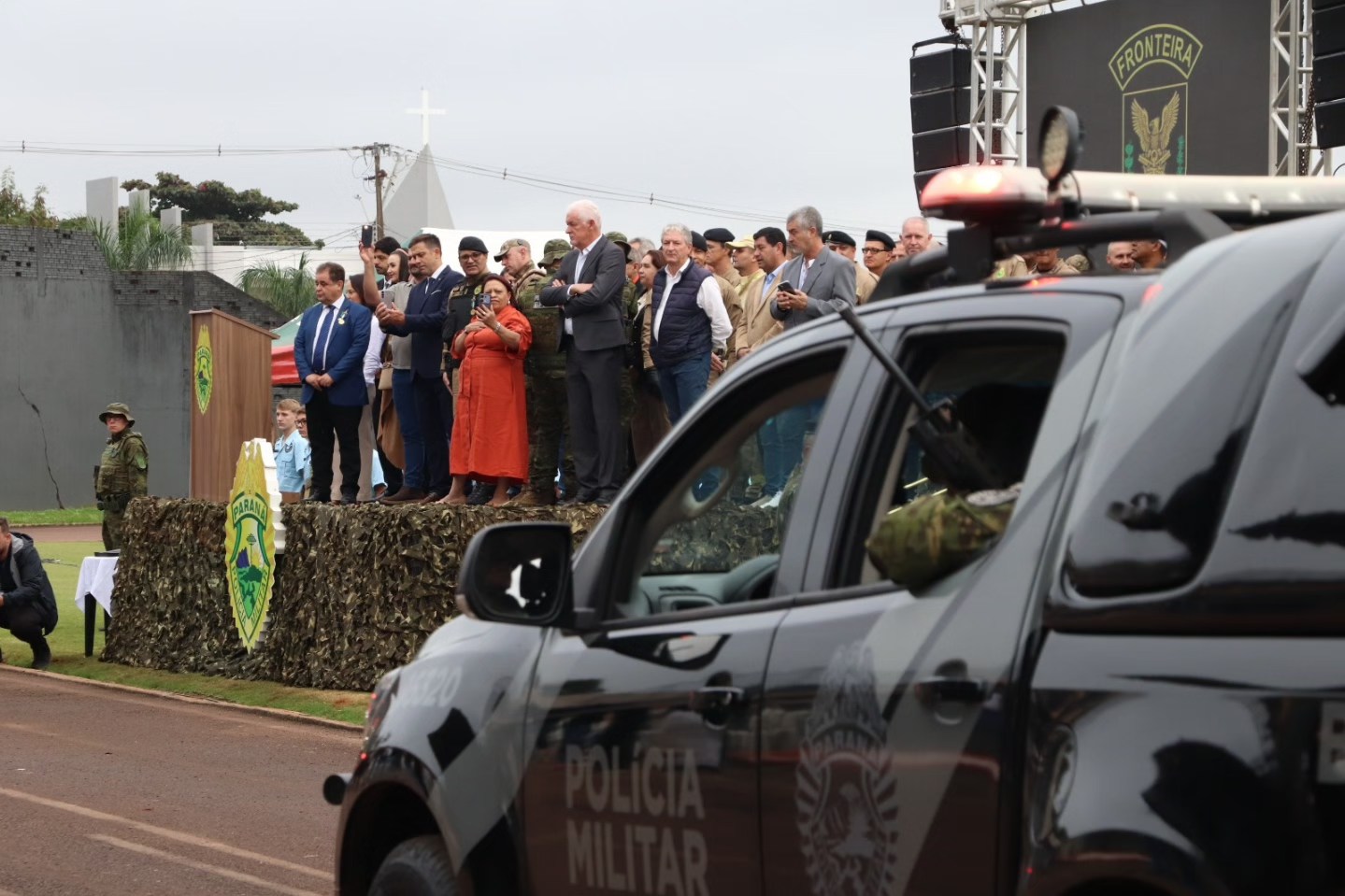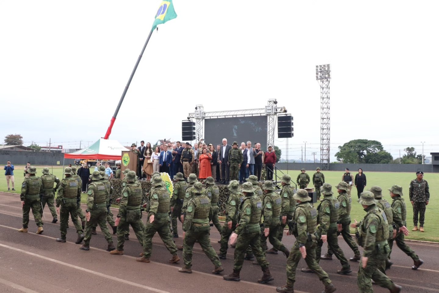 Diversas autoridades civis e militares participaram, no início da manhã desta sexta-feira, dia 6, do evento em comemoração aos 13 anos de fundação do Batalhão de Polícia de Fronteira (BPFron), realizado no Estádio Municipal Valdir Schneider, em Marechal Cândido Rondon.